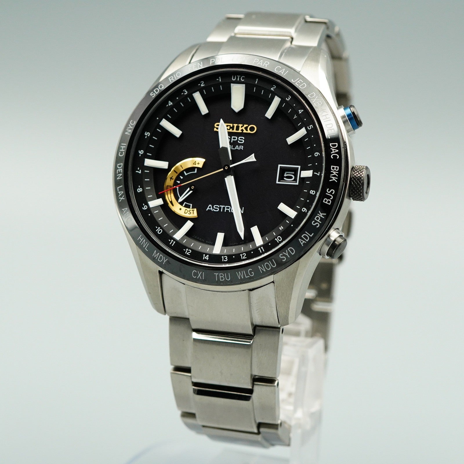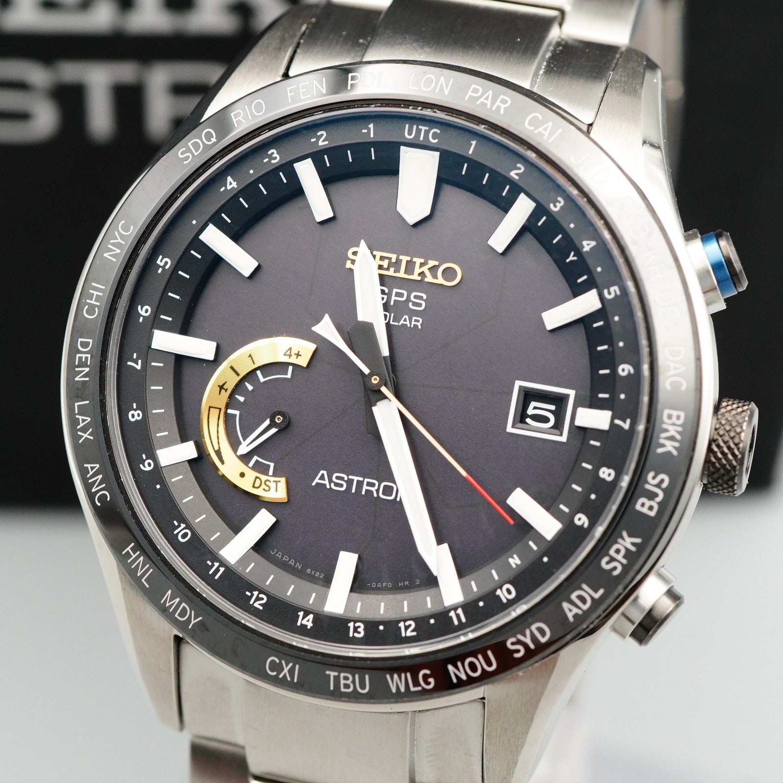 Box & Paper *MINT* Vintage SEIKO ASTRON 8X22-0AJ0ー2 Solar Black Dial Round 45mm Mens Watch