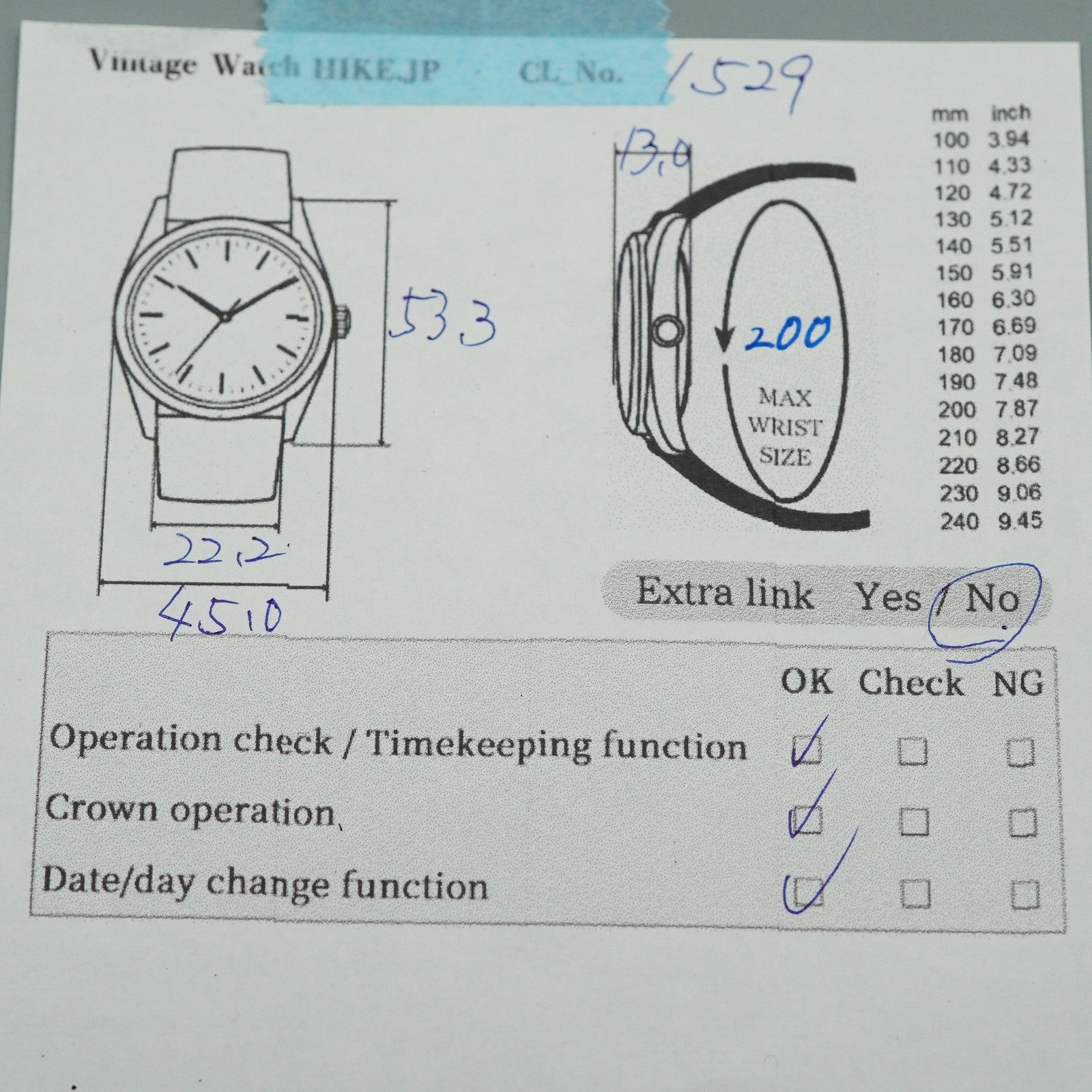 | Wrist Size | About 14.0 cm ( 5.5 in ) |