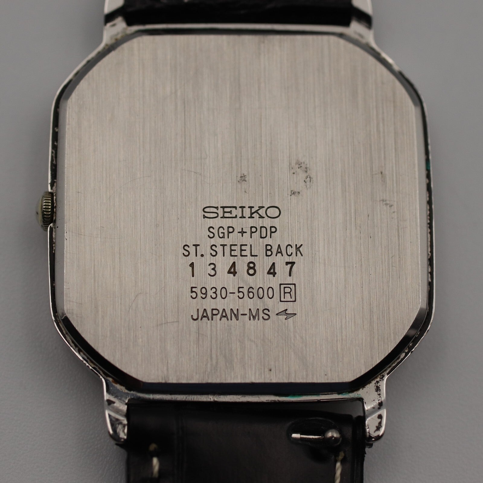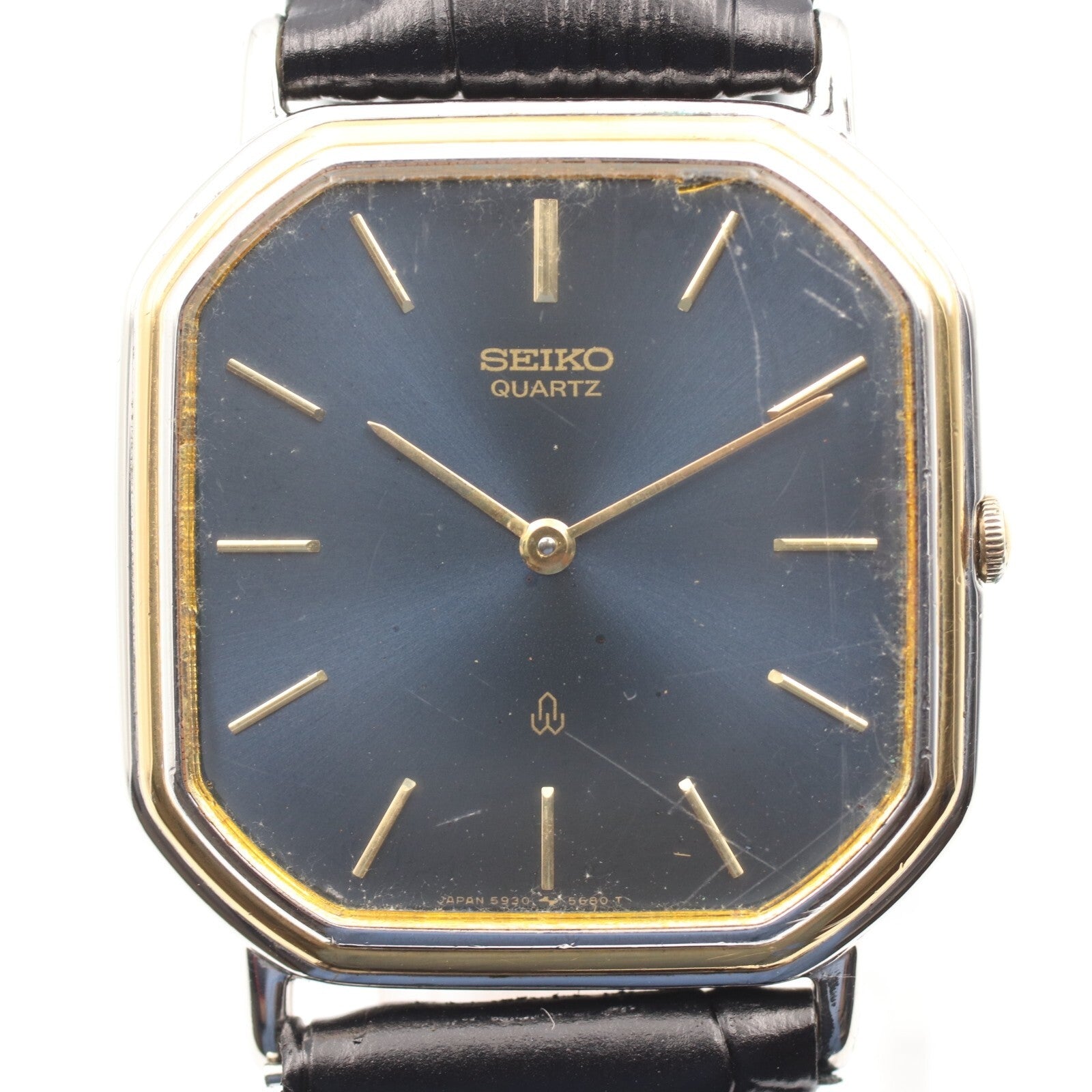 *Exc+4* Vintage 1990s SEIKO Chariot 5930-5600 Qz Navy Square 30mm Mens Watch