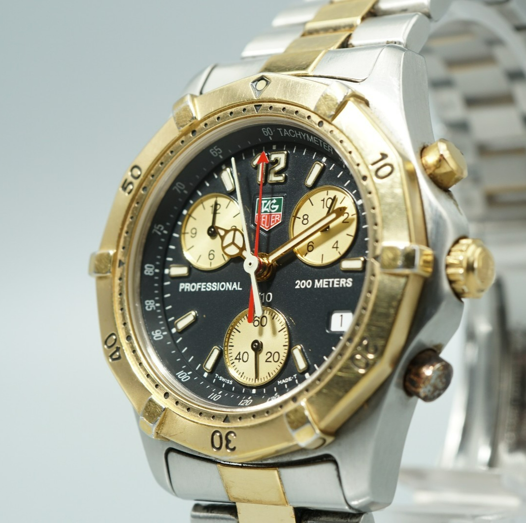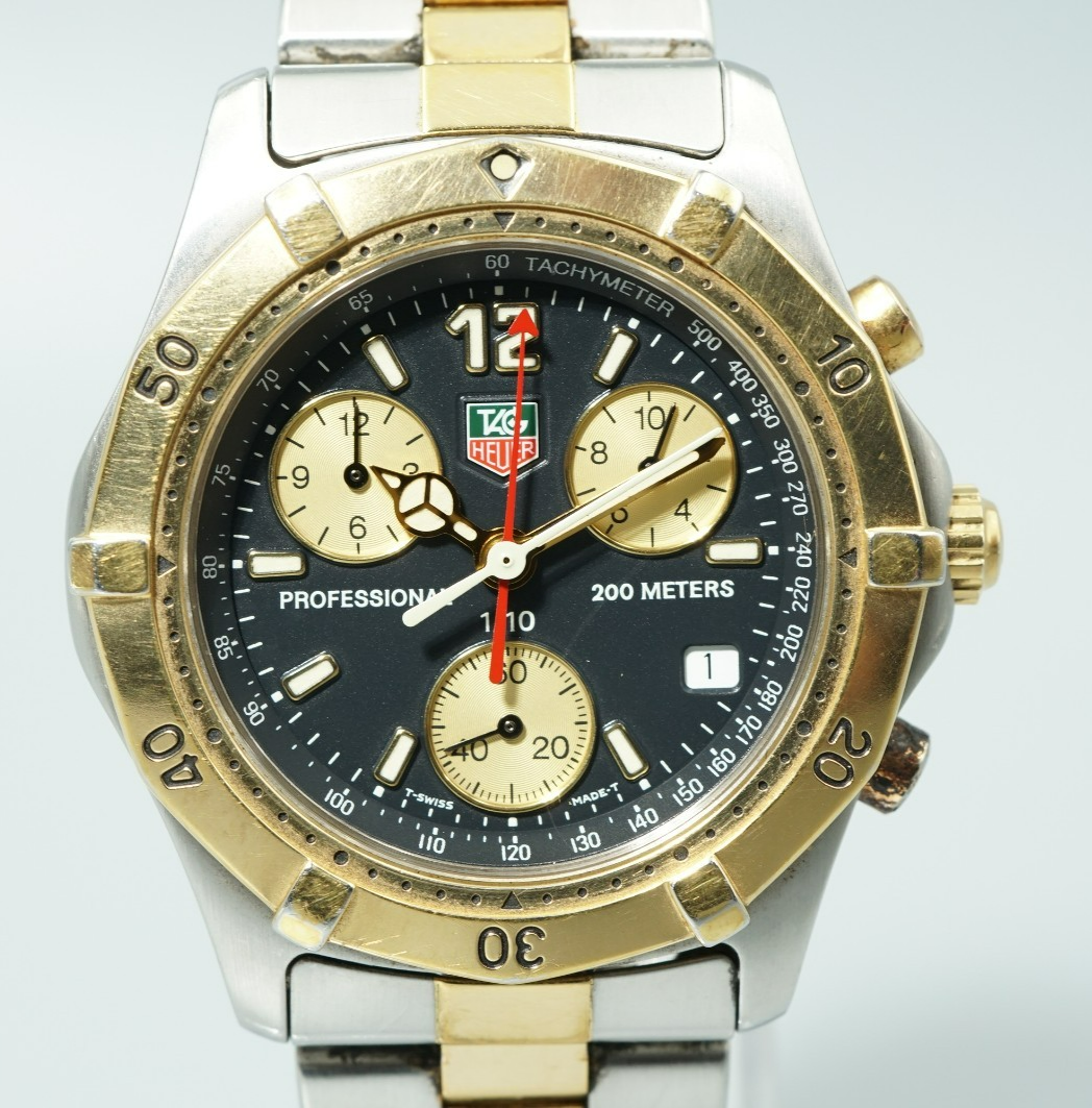 *Exc+5* TAG HEUER Professional 2000 CK1120 Qz Black Dial Round 39mm Mens Watch