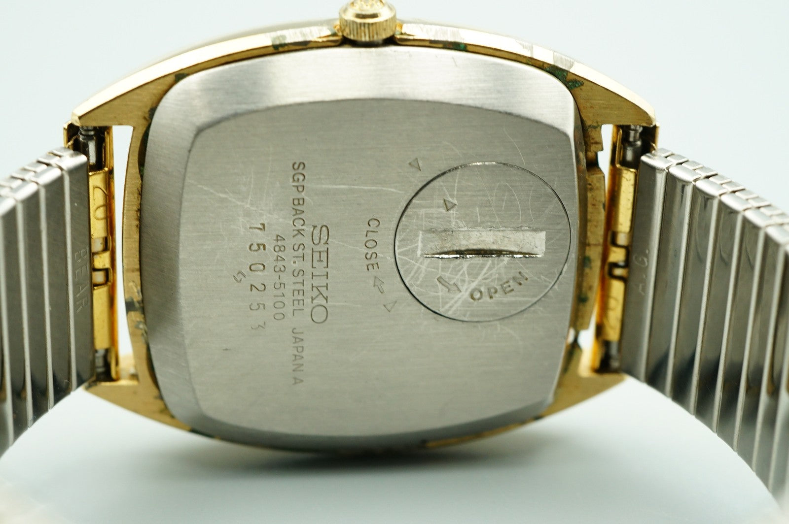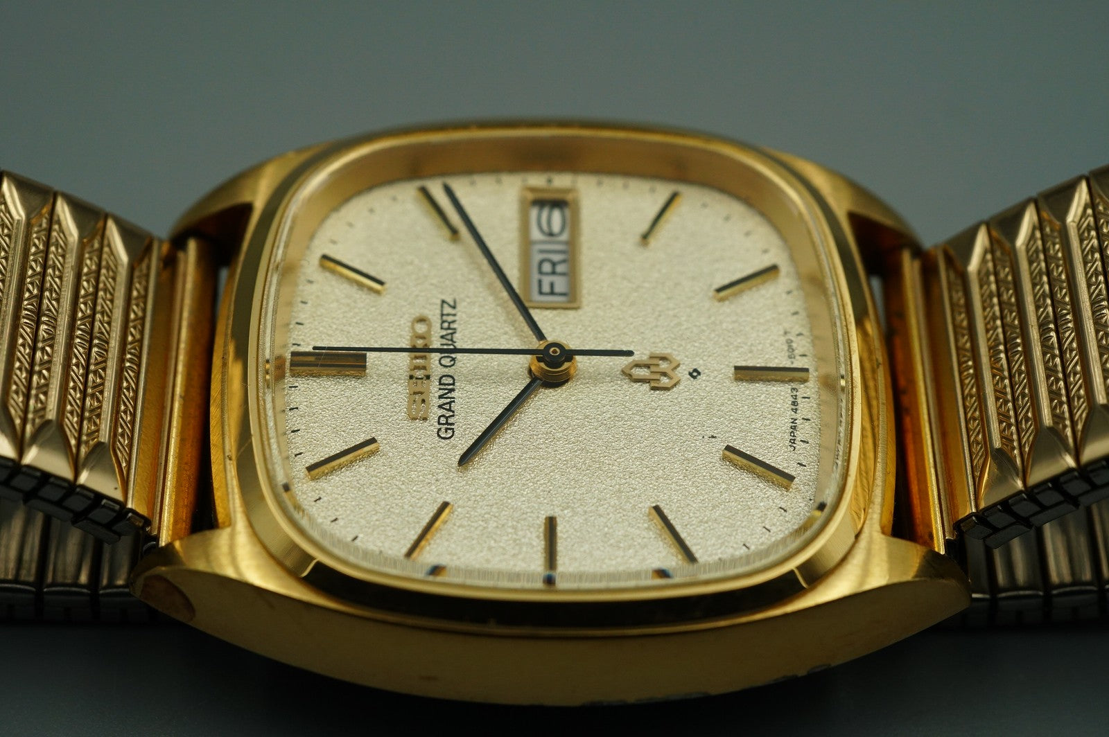 *Exc+5* Vintage 1977 SEIKO Grand Qz48 43-5100 Qz Gold Square 34mm Mens Watch