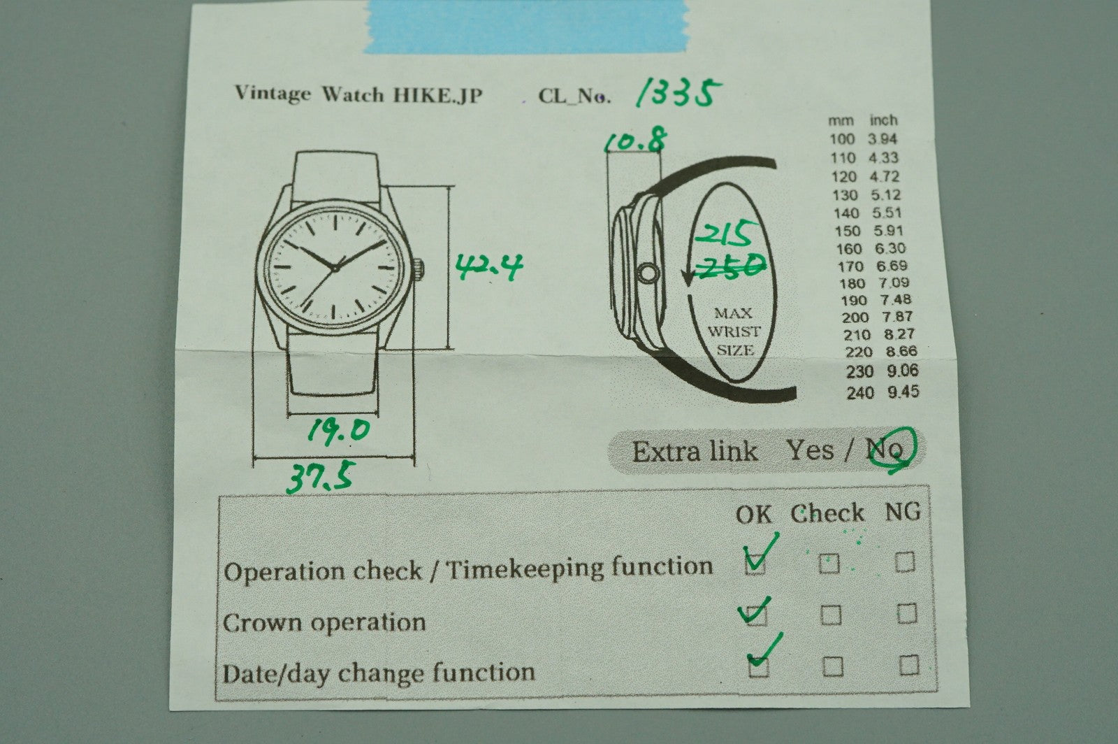| Wrist Size | About 20.5 cm ( 8.1 in ) |