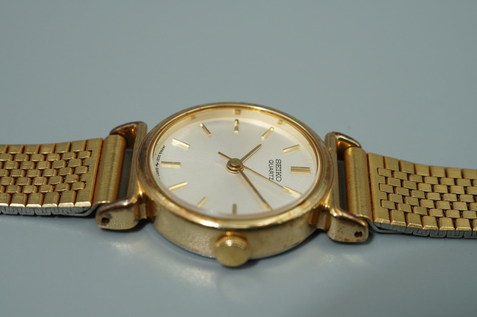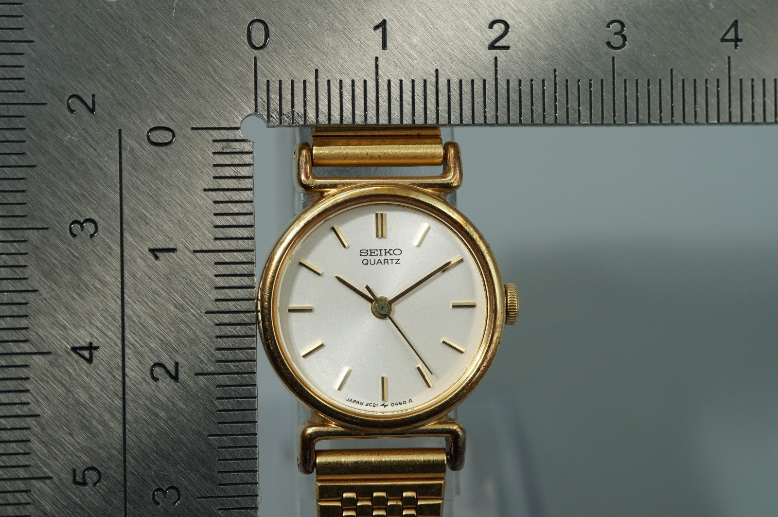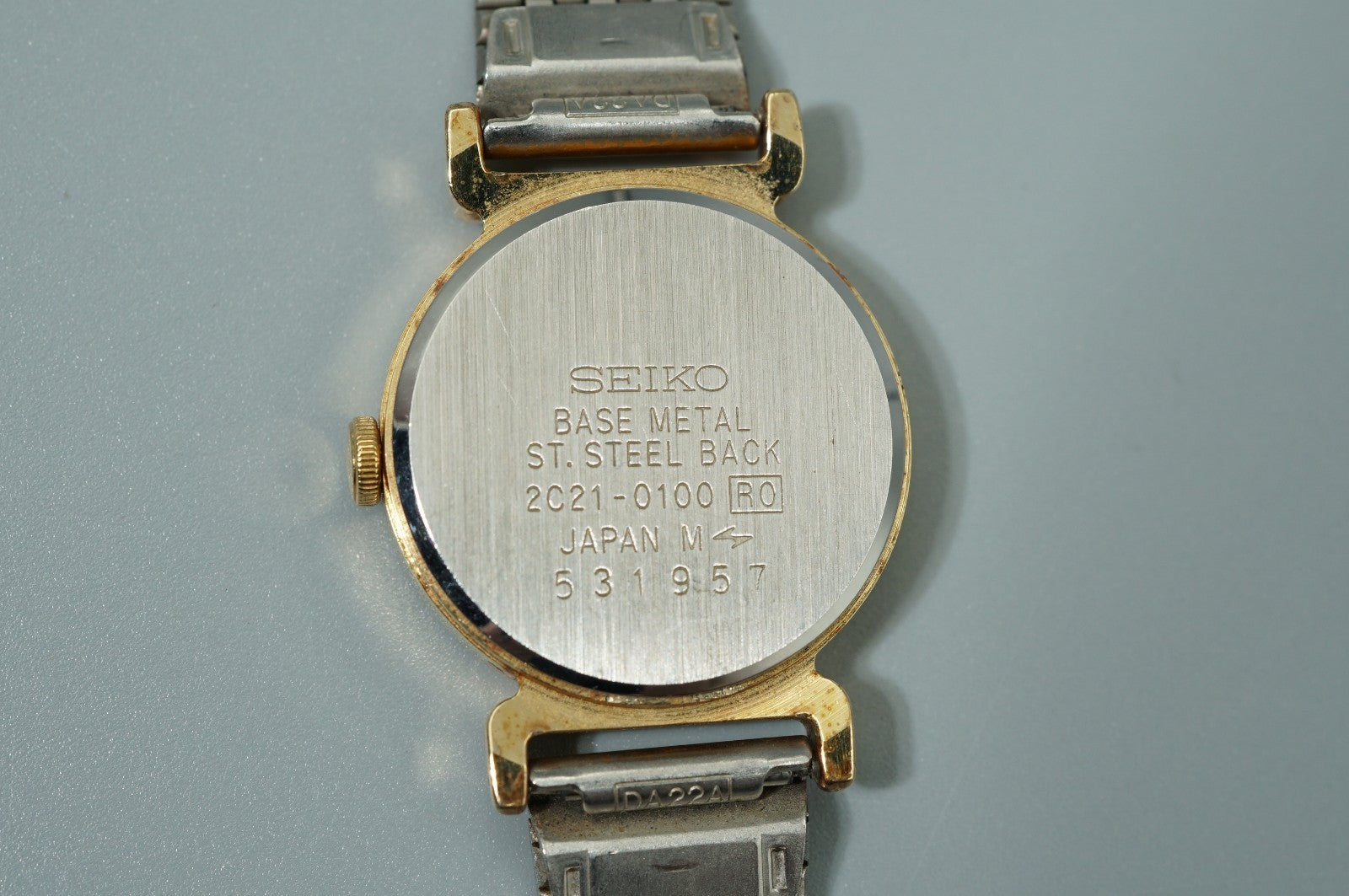 *Exc+5* Vintage 1985 SEIKO Bracelet 2C21-0100 Qz White Round 21mm Women Watch
