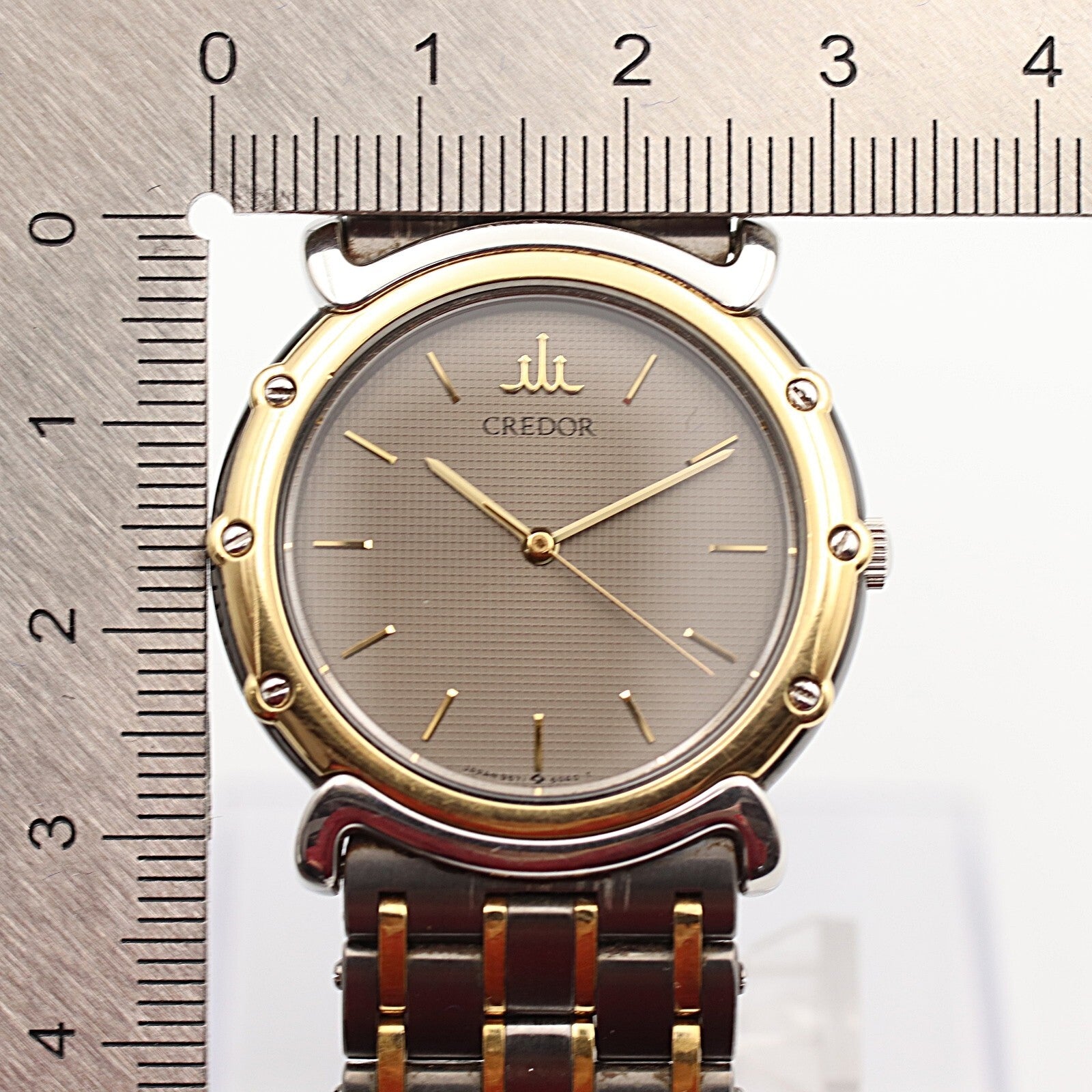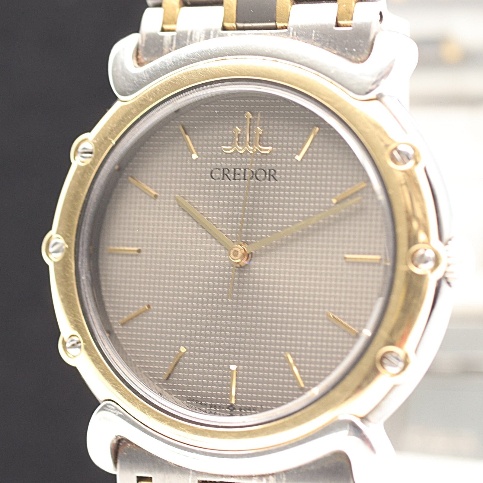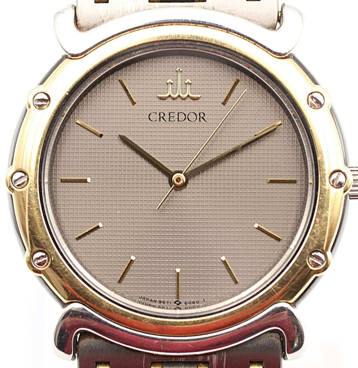 *Exc+5* Vintage 1990s SEIKO CREDOR 9571-6050 Qz Gray Dial Round 31mm Mens Watch