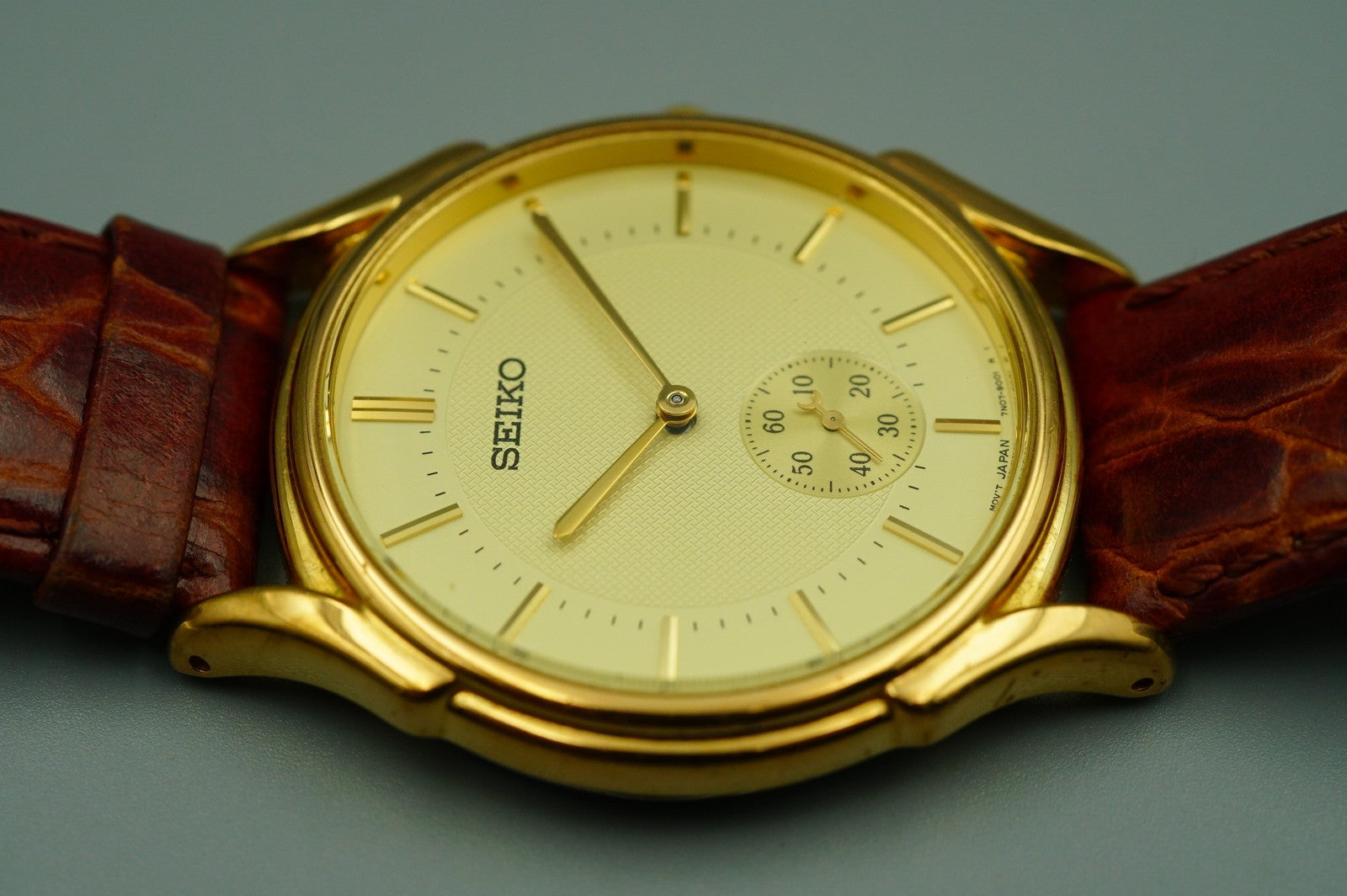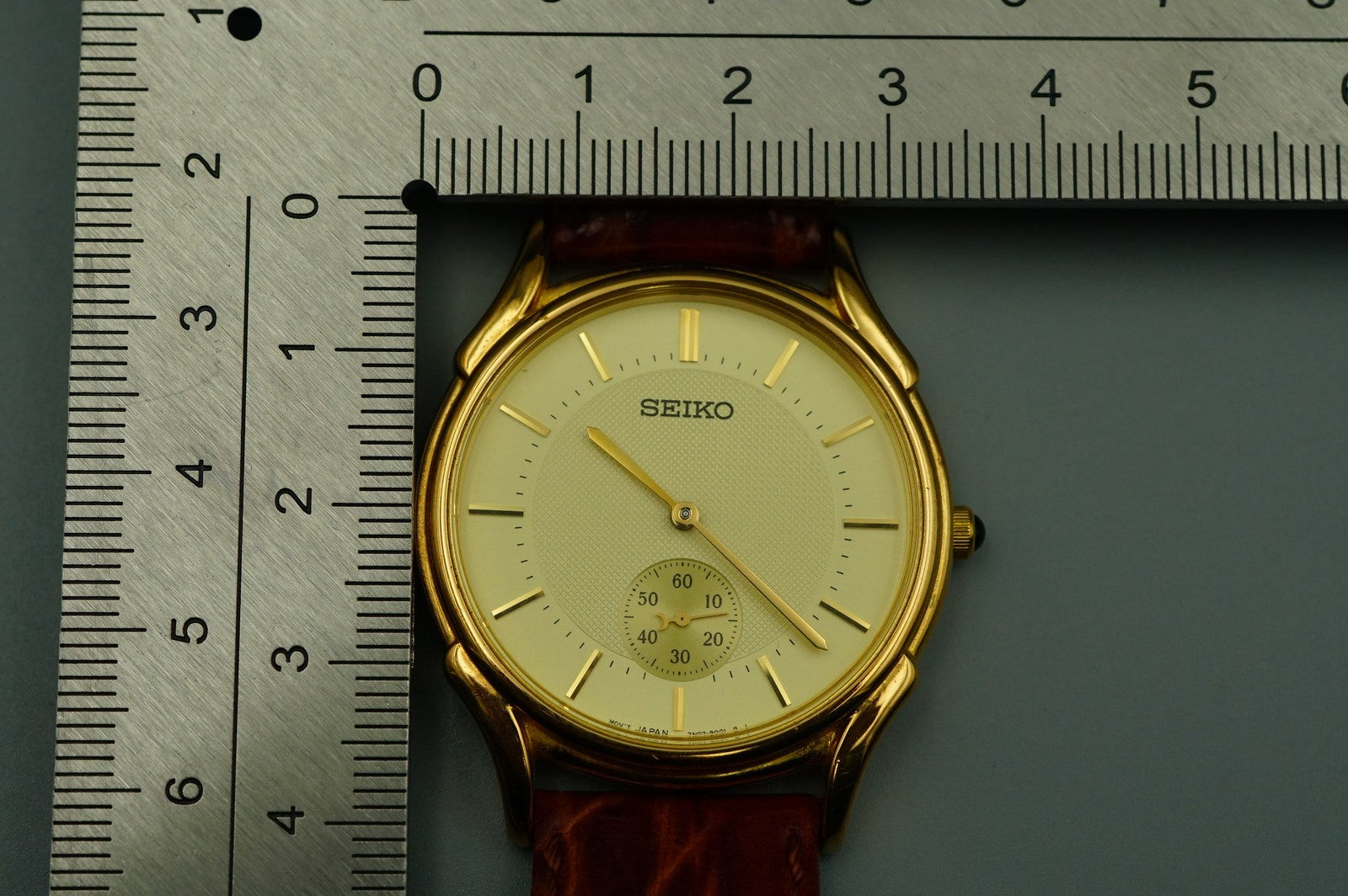 *Exc+5* Vintage 1996 SEIKO small seconds 7N07-9000 Qz Gold Round 35mm Mens Watch