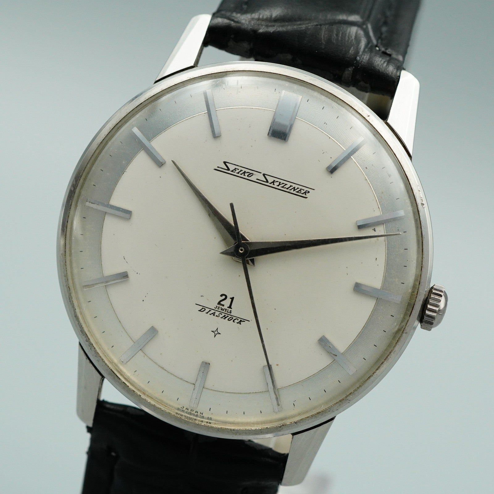 *Exc+5* Vintage SEIKO SKYINER J15006E Hand Winding White Round 36mm Mens Watch