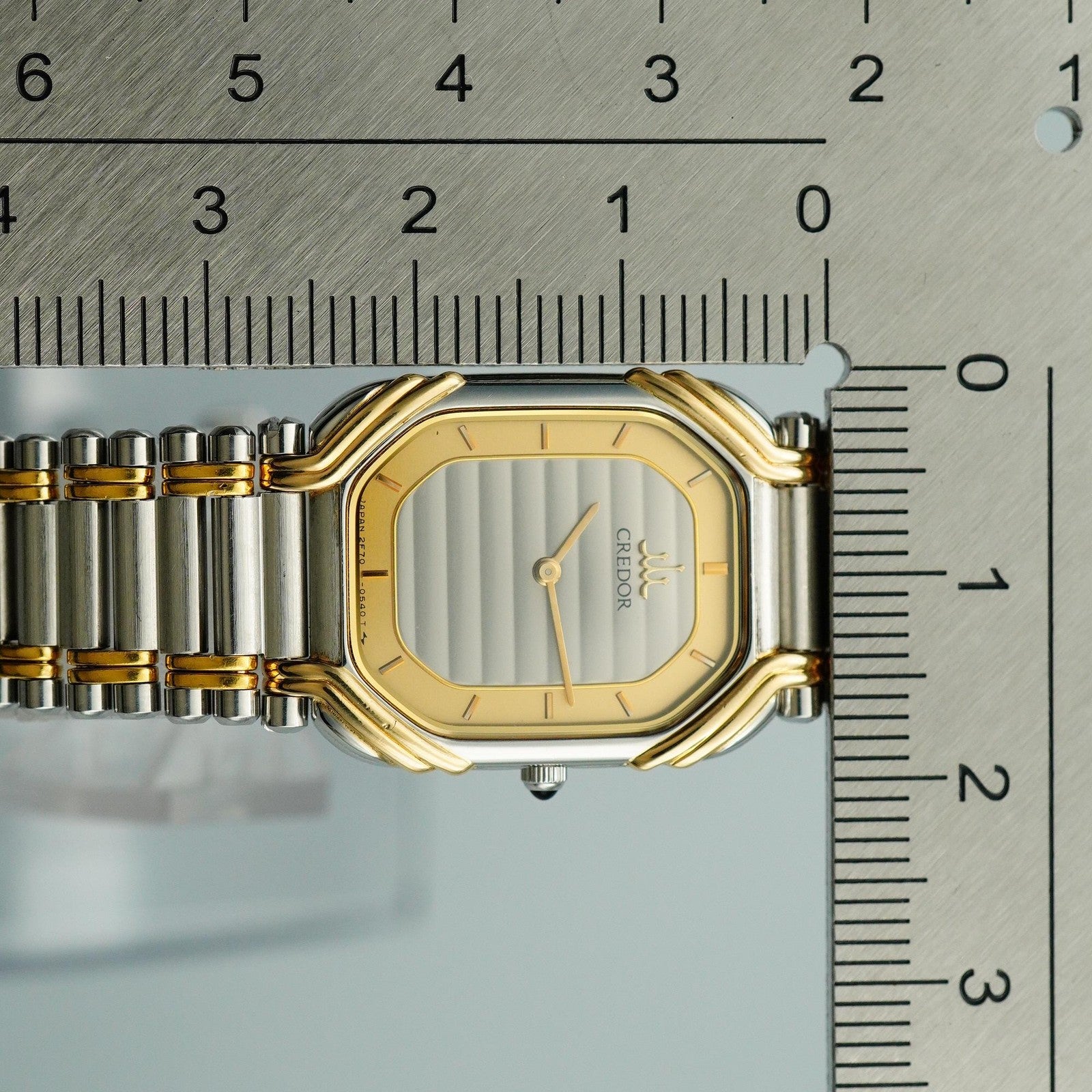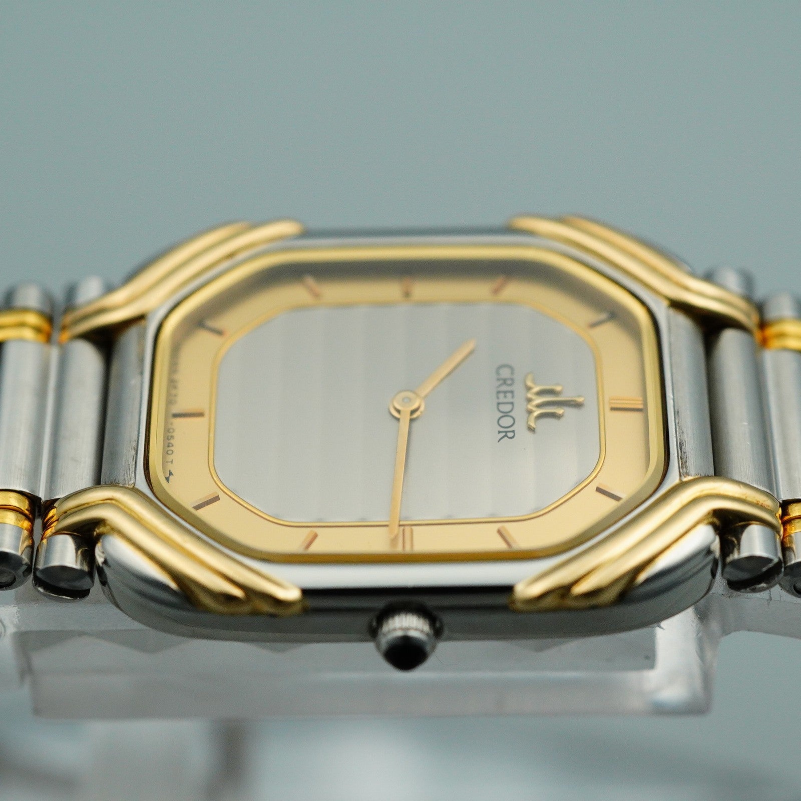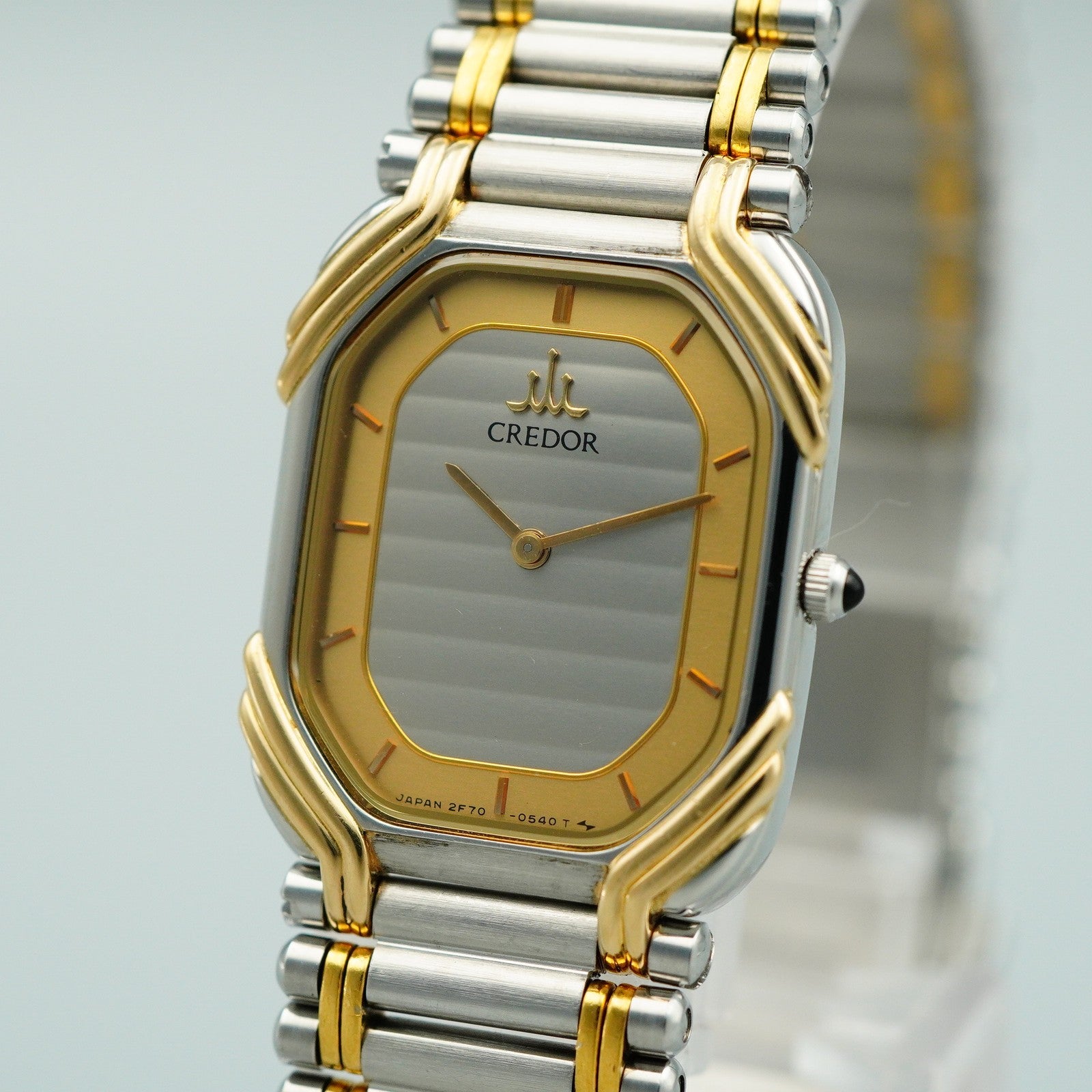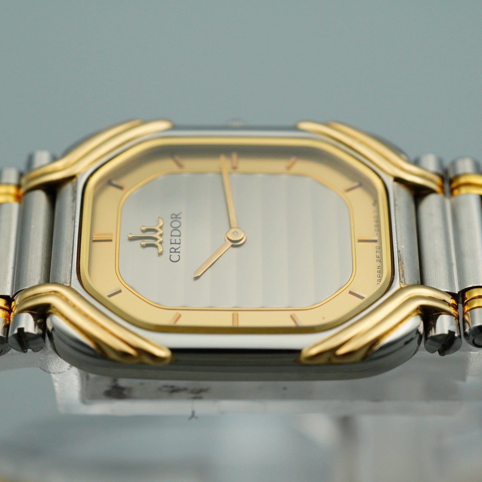 *MINT* Vintage 18KT SEIKO CREDOR 2F70-5490 Qz Silver Rectangle 19mm Women Watch