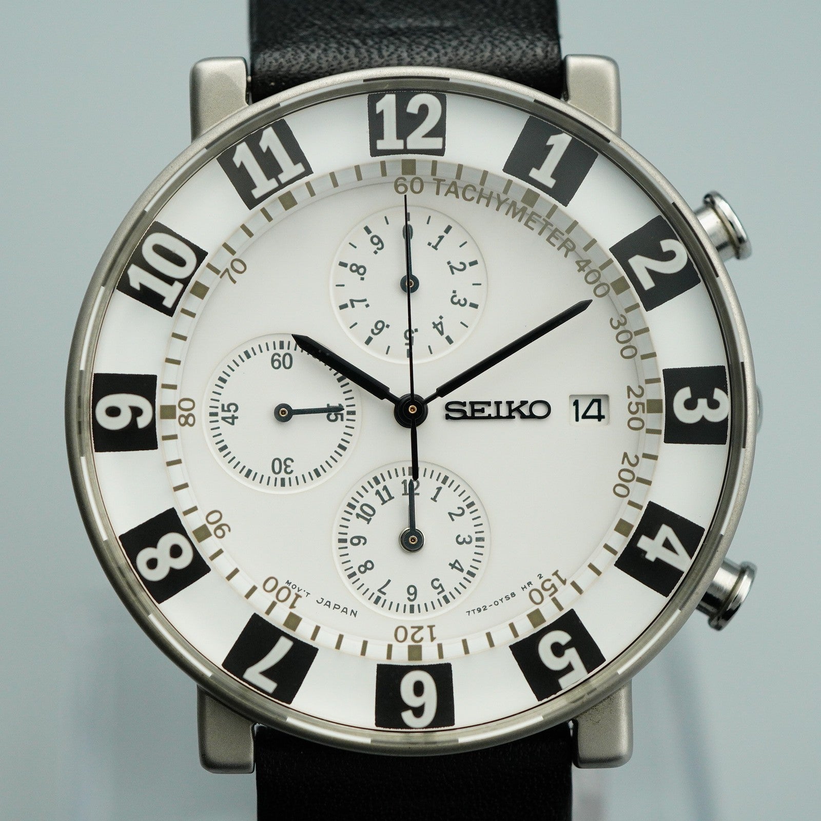 *MINT* Vintage SEIKO SPIRIT SOTTSASS 7T92-0TS0 Qz White Round 39mm Mens Watch