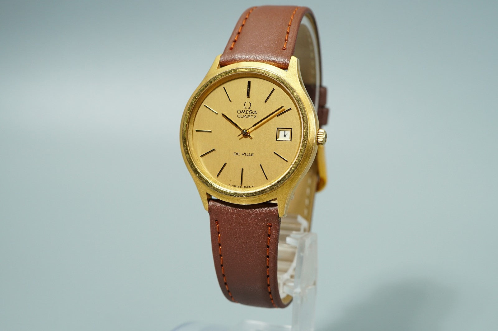 N MINT Vintage 1970s OMEGA De Ville Cal.1325 Ref.192 Qz Gold 35mm Mens Watch