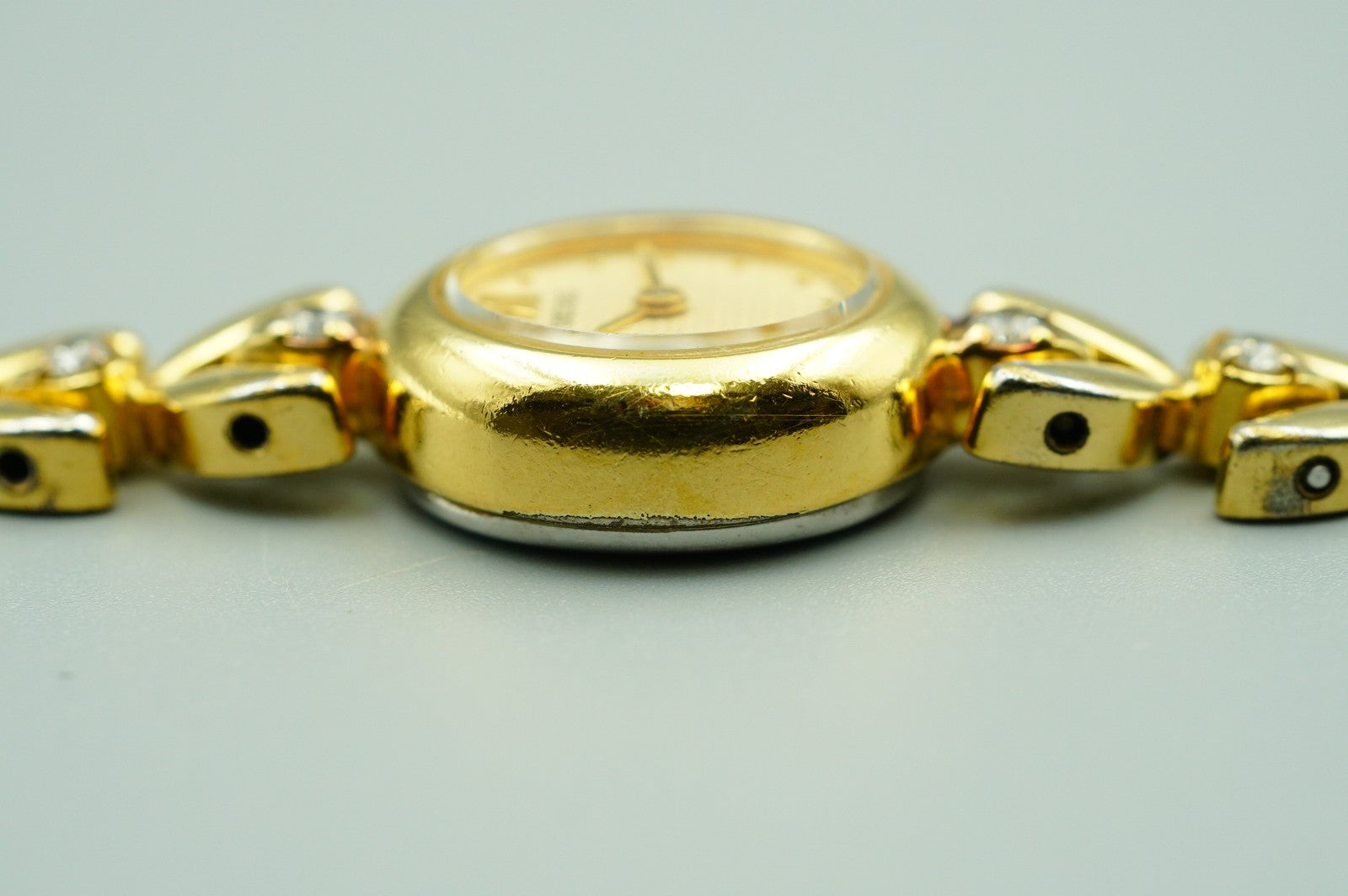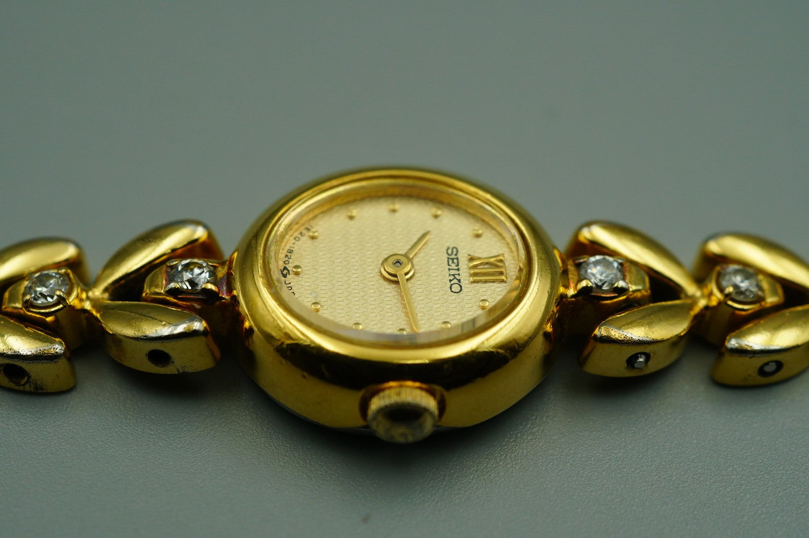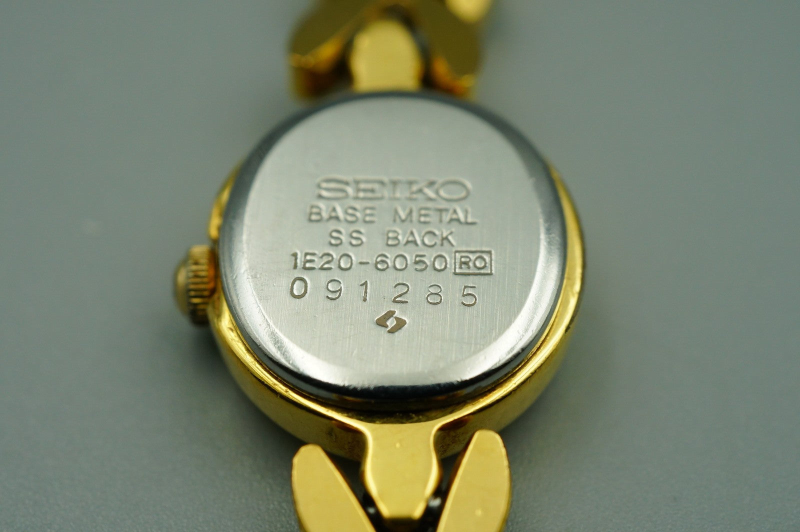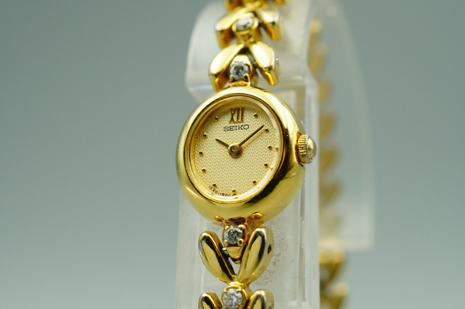 *N MINT* Vintage 1980s SEIKO 8P Diamond 1E20-6050 Qz Gold Round 13mm Women Watch