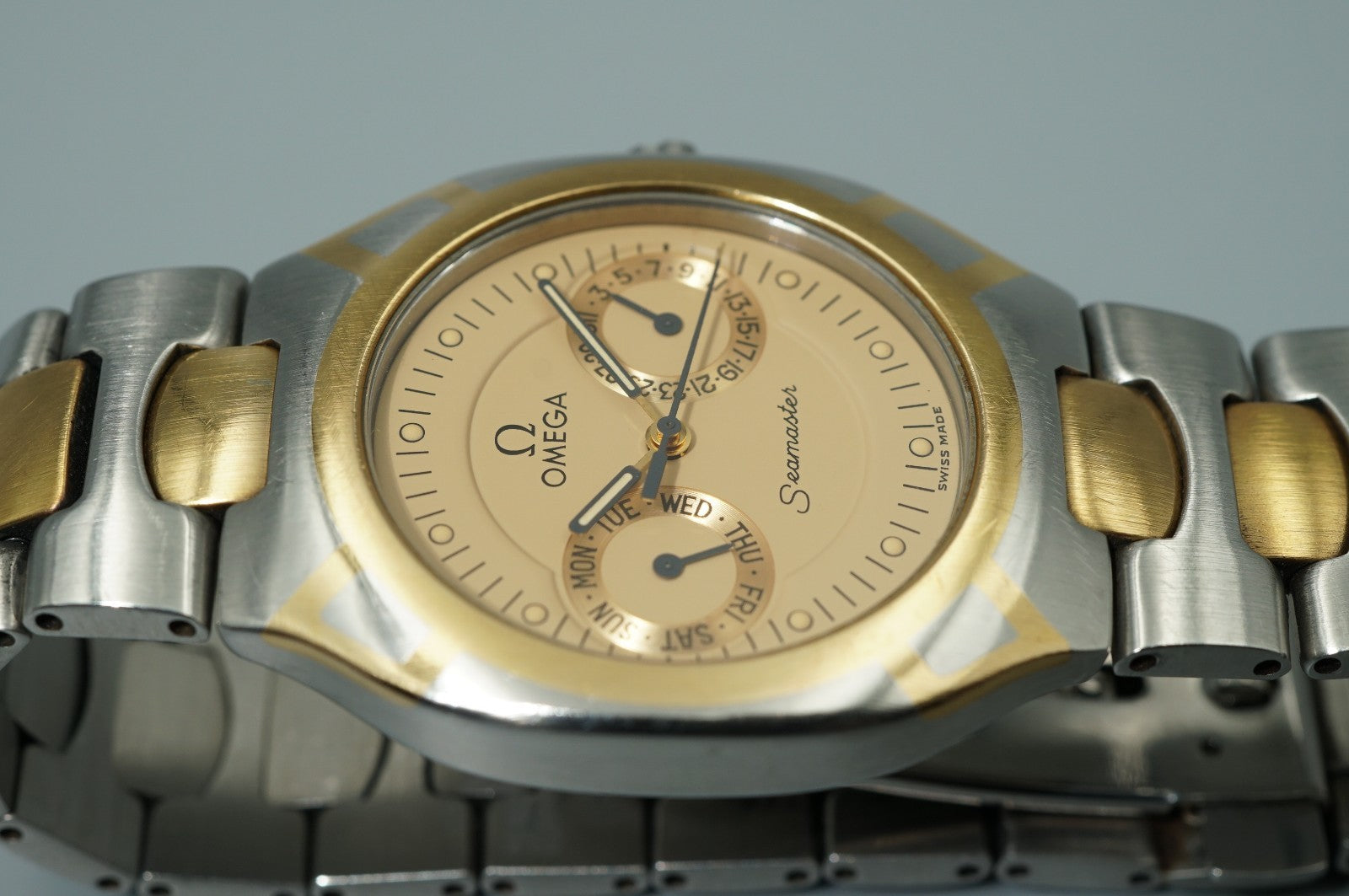 N MINT Vintage 1991 OMEGA Seamaster Cal.1444 Qz Gold Dial Round 31mm Mens Watch