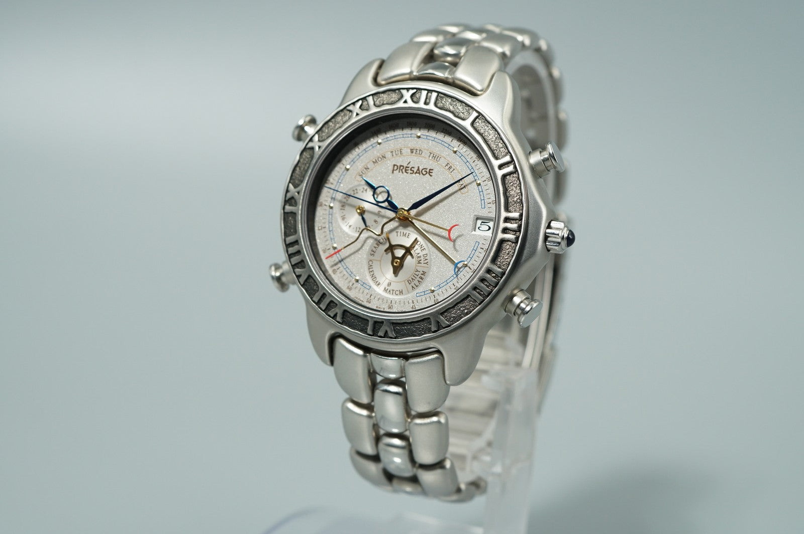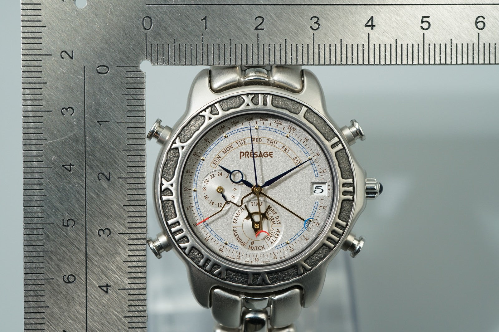N MINT Vintage 1991 SEIKO PRESAGE 6M13-7000 Quartz Silver Round 38mm Mens Watch