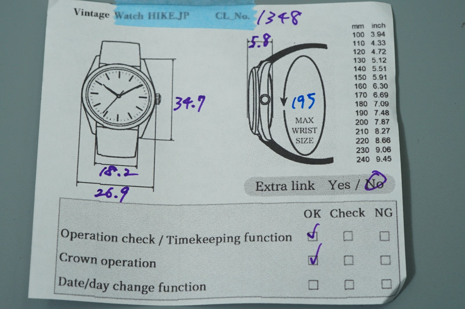 | Wrist Size | About 19.5 cm ( 7.7 in ) |