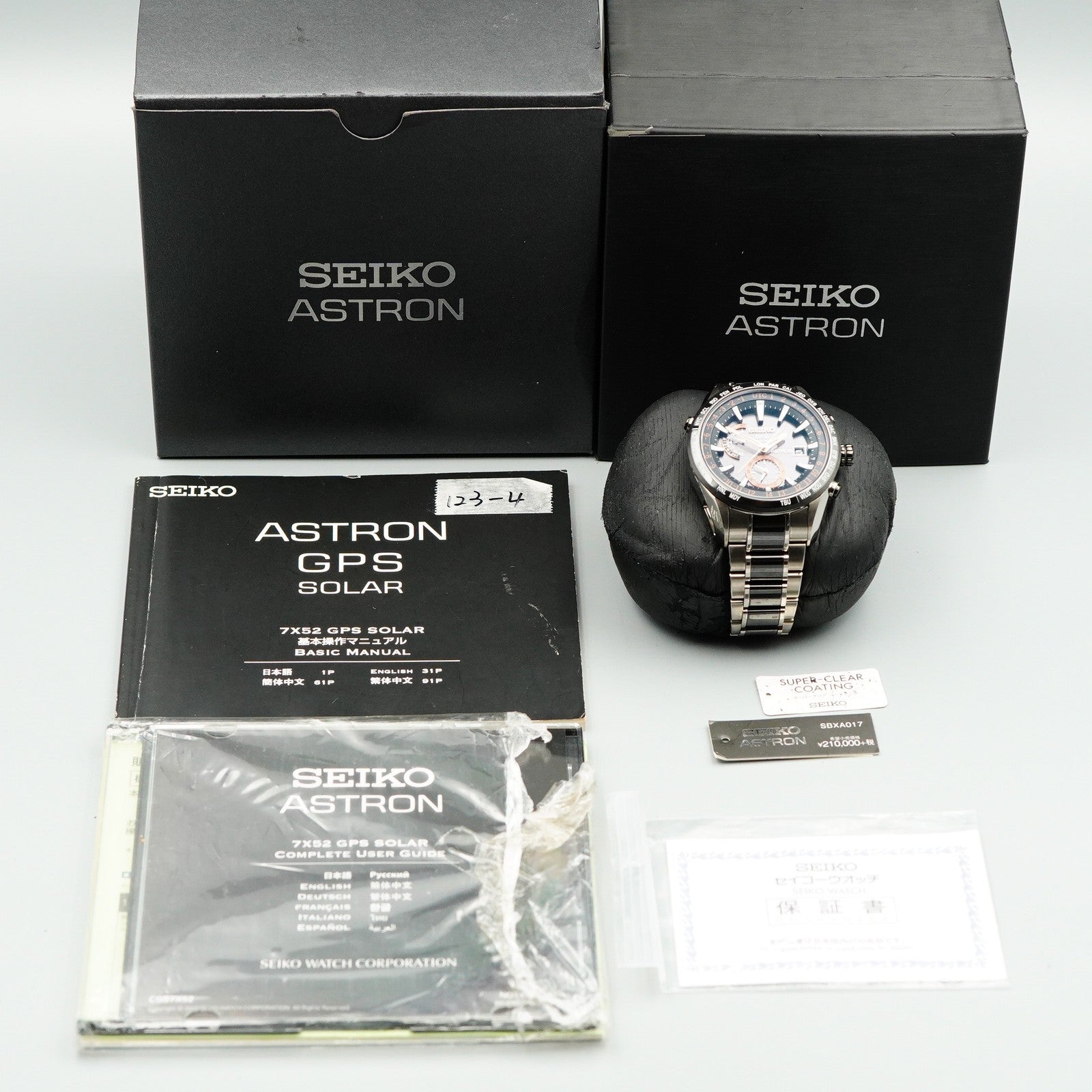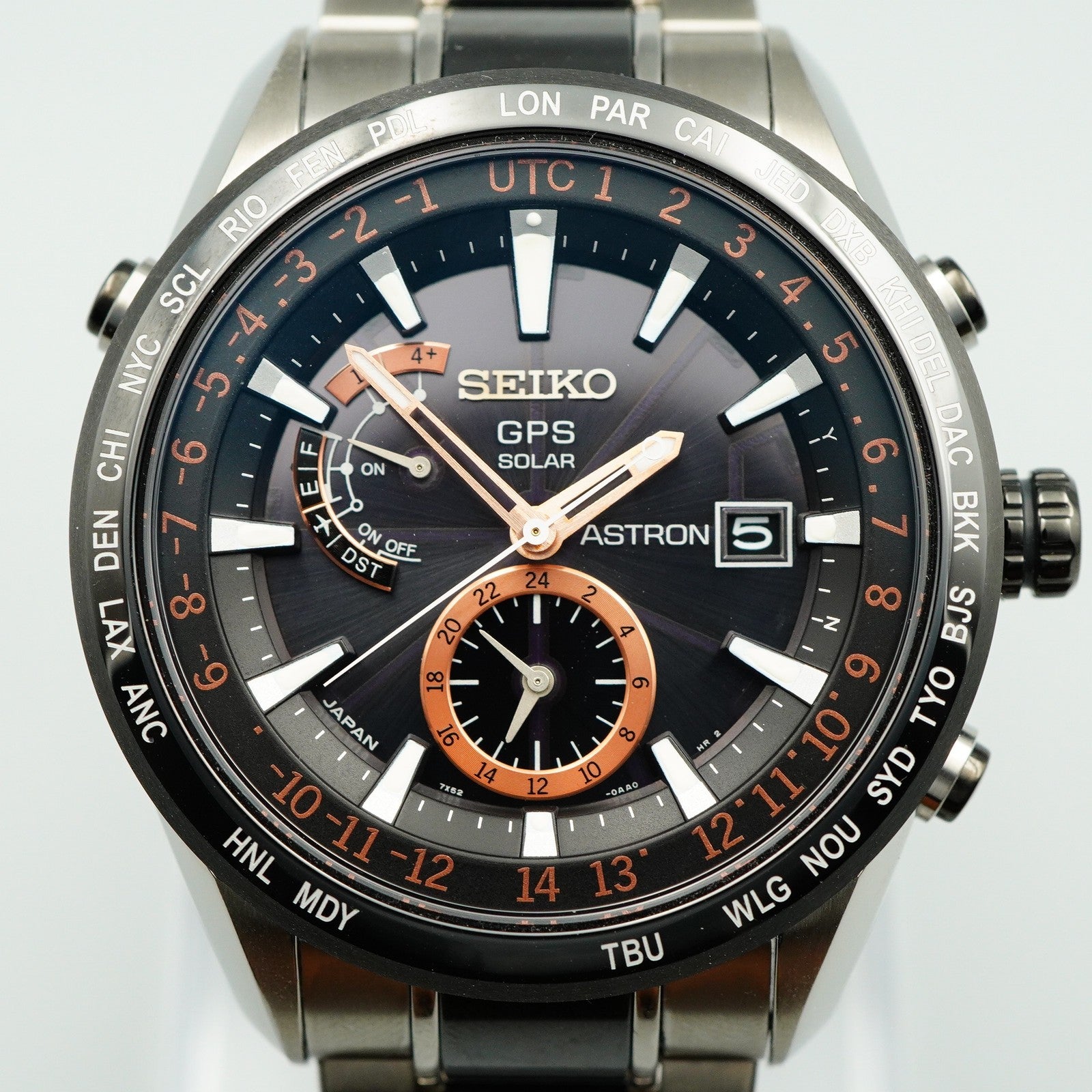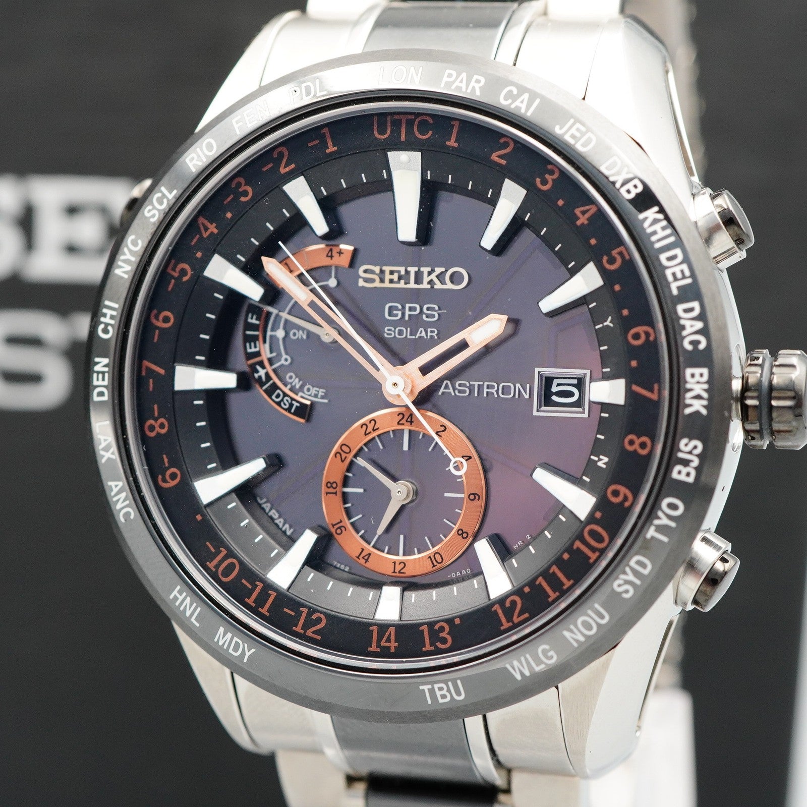 *NEAR MINT* Box & Paper SEIKO ASTRON 7X52-0AF0 Solar Black Round 47mm Mens Watch