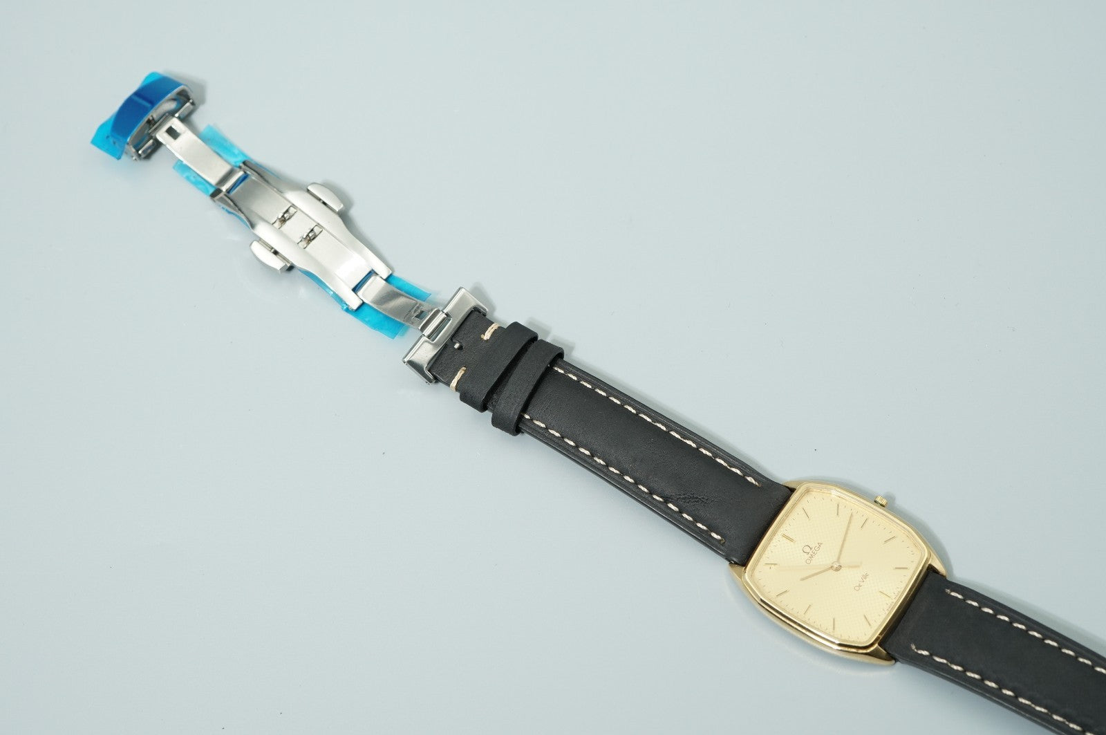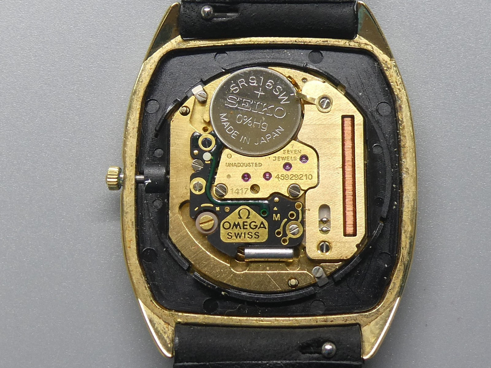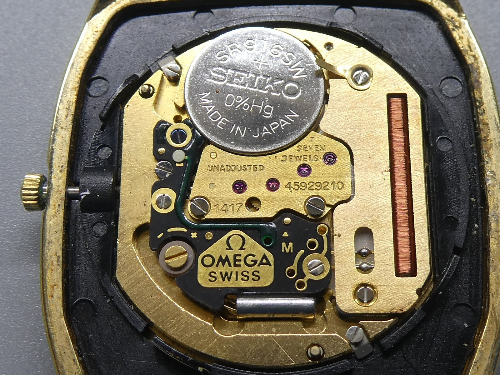 *NEAR MINT* OMEGA De Ville Cal.1417 Quartz Gold Dial Square 30mm Mens Watch