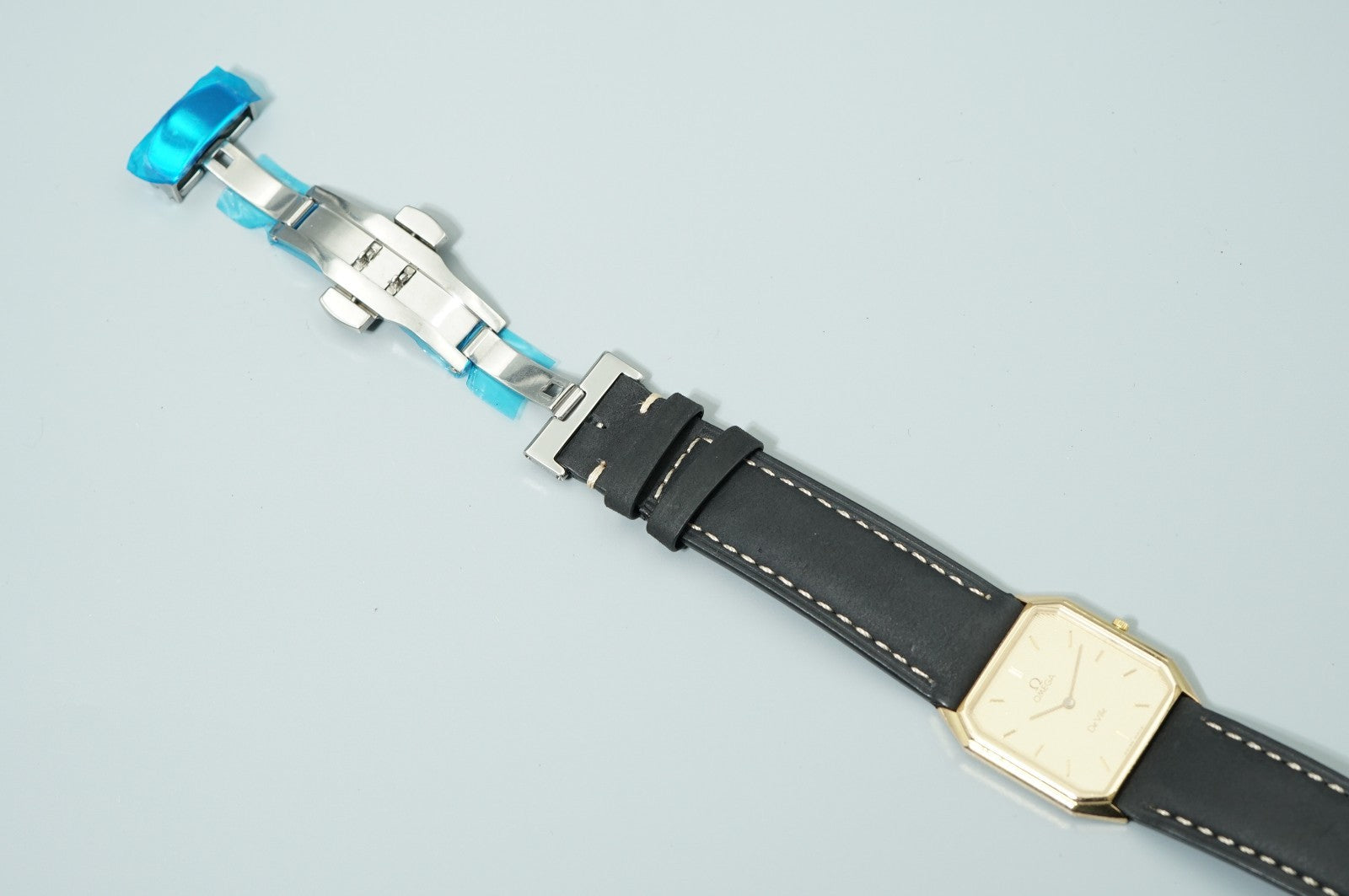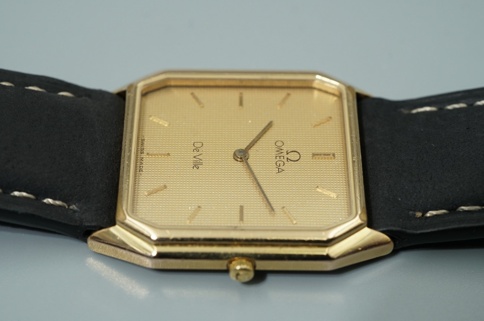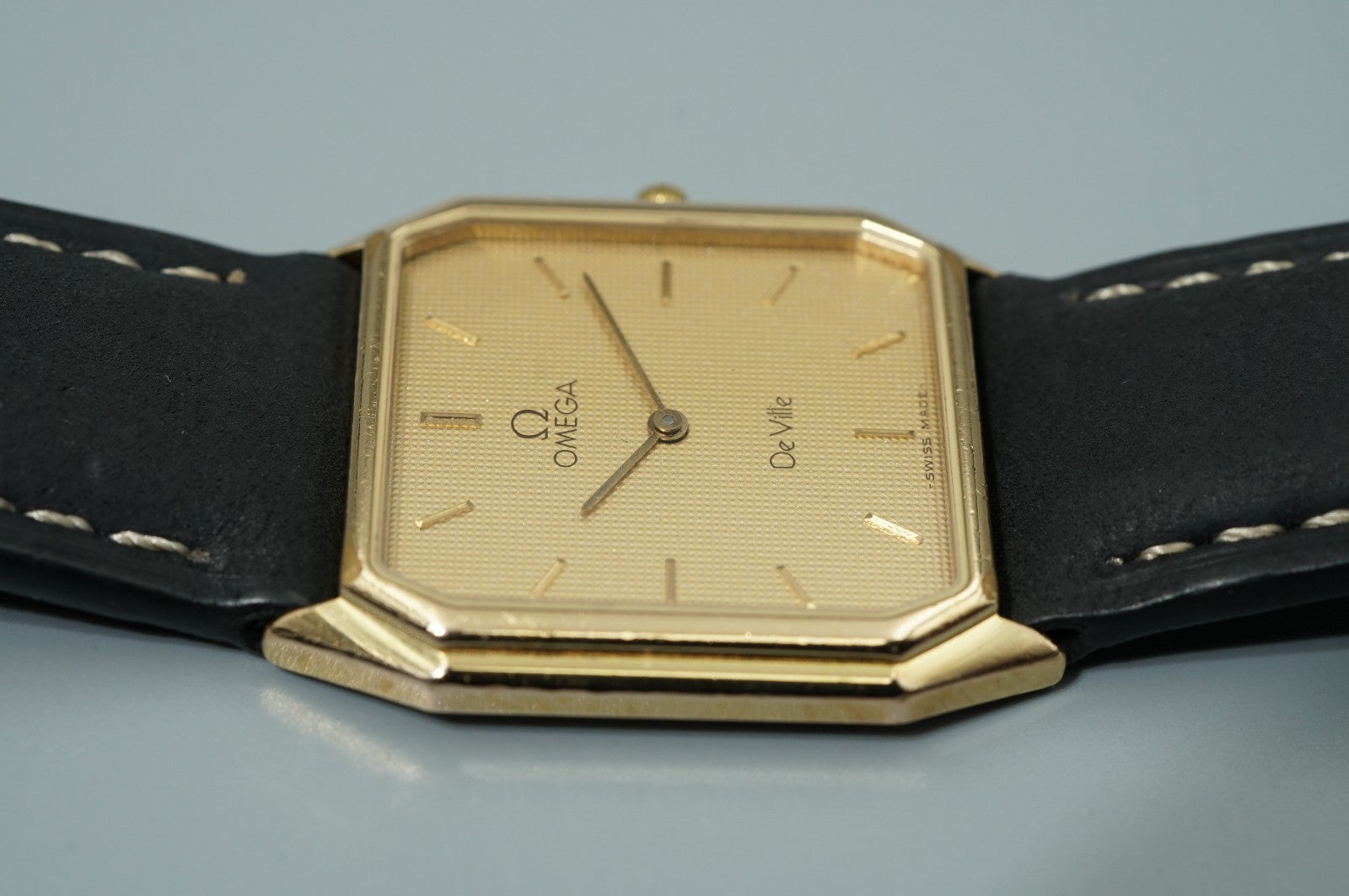 *NEAR MINT* Vintage 1986 OMEGA De Ville Cal.1377 Qz Gold Square 28mm Mens Watch
