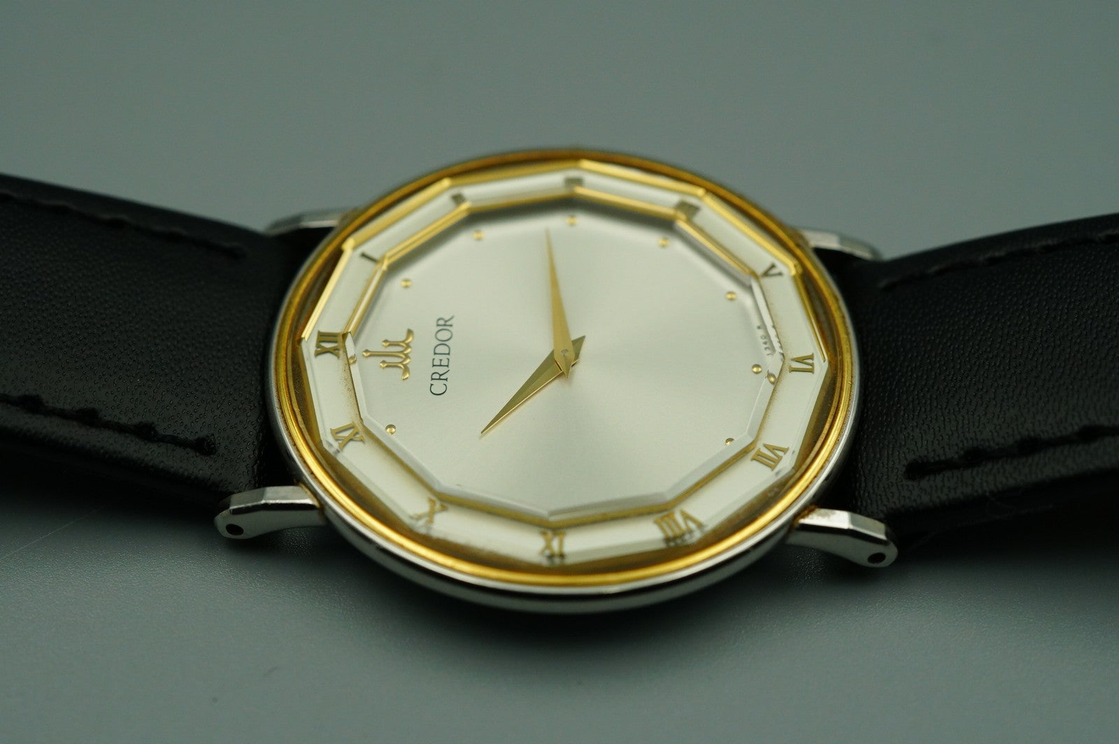 *NEAR MINT* Vintage 1988 SEIKO CREDOR 2F70-0290 Qz Silver Round 31mm Mens Watch