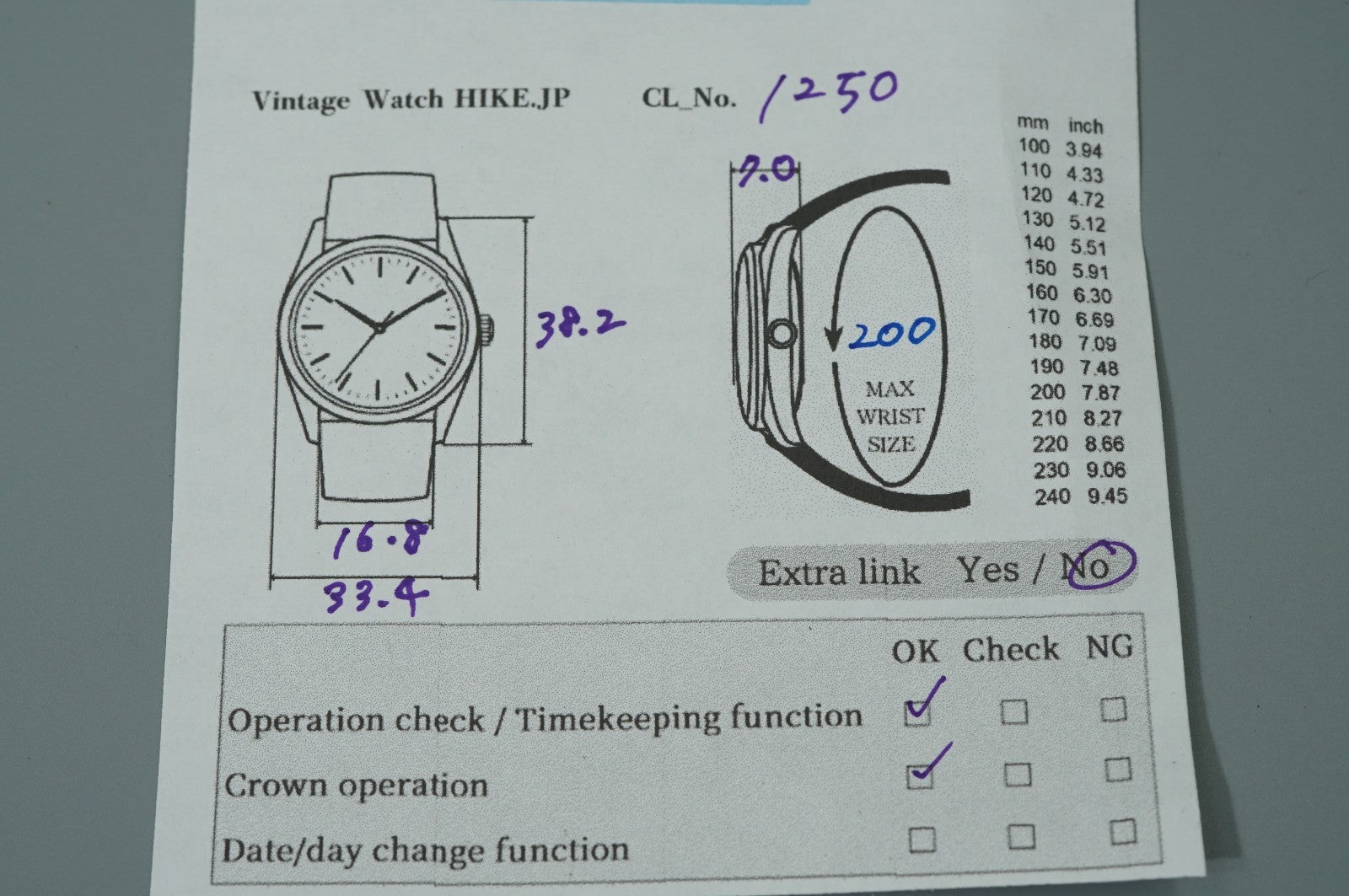 Wrist Size | About 20.0 cm ( 7.9 in ) |