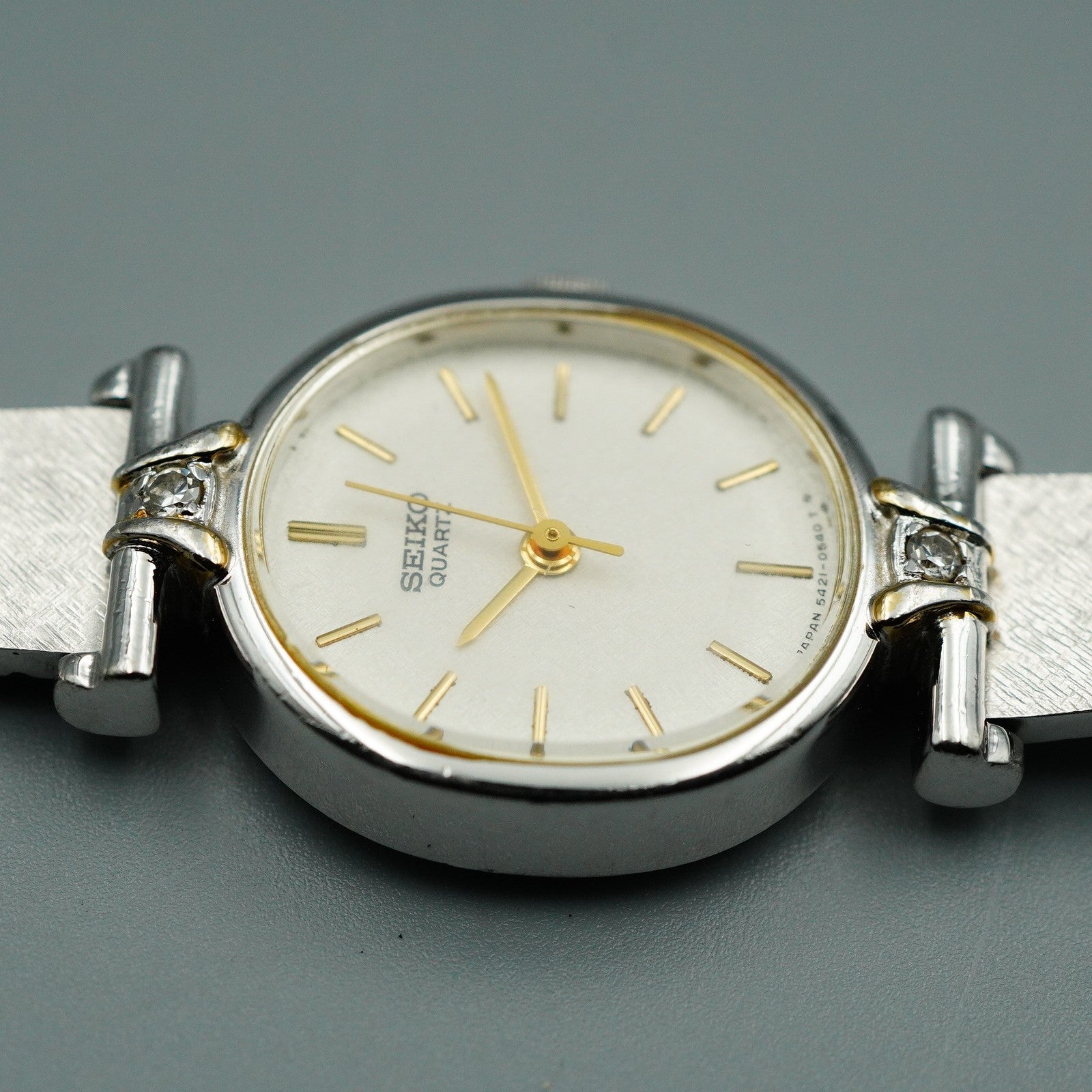 *NEAR MINT* Vintage SEIKO 5421-5250 Qz White Dial Oval 18mm Women Watch