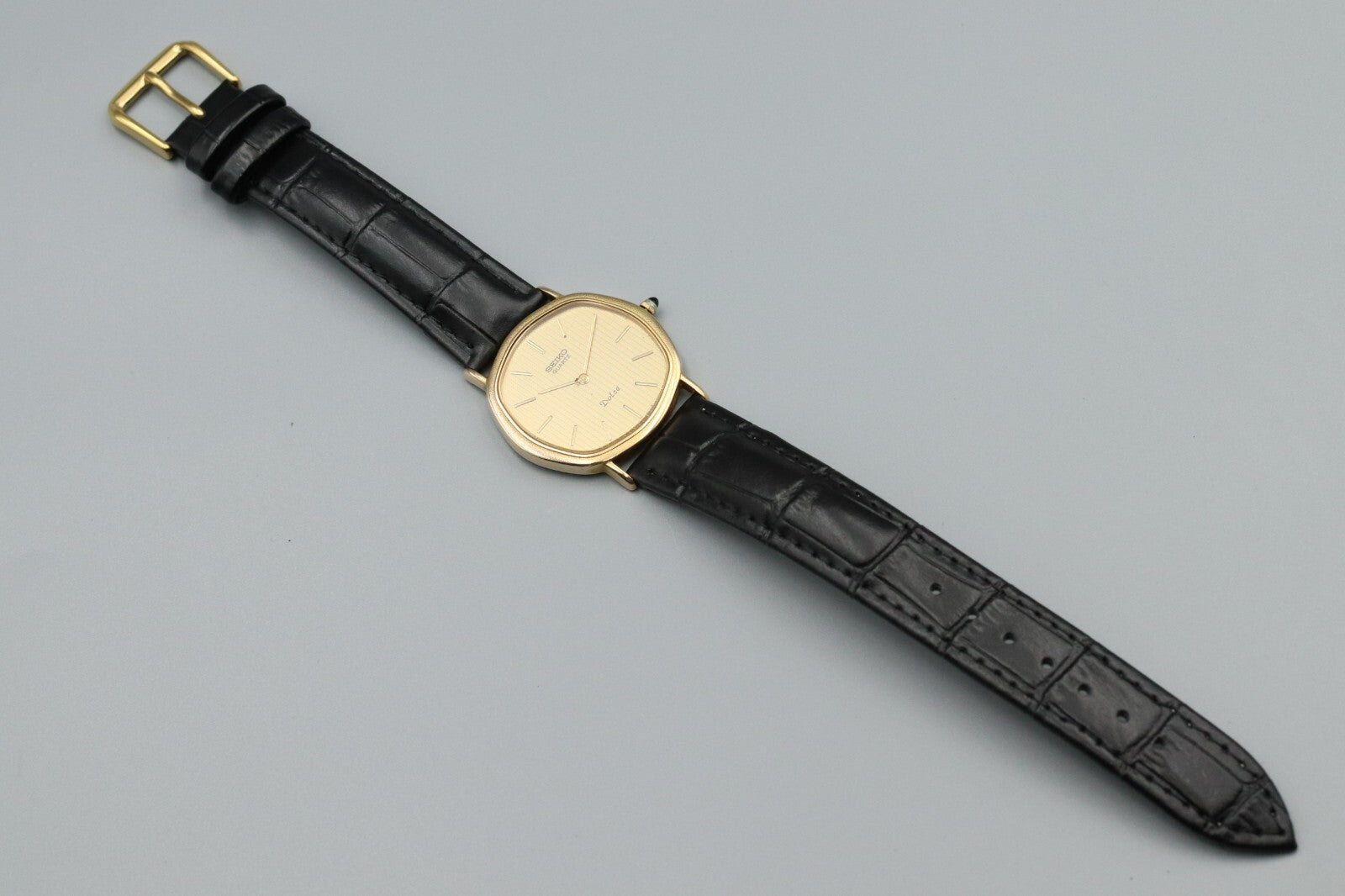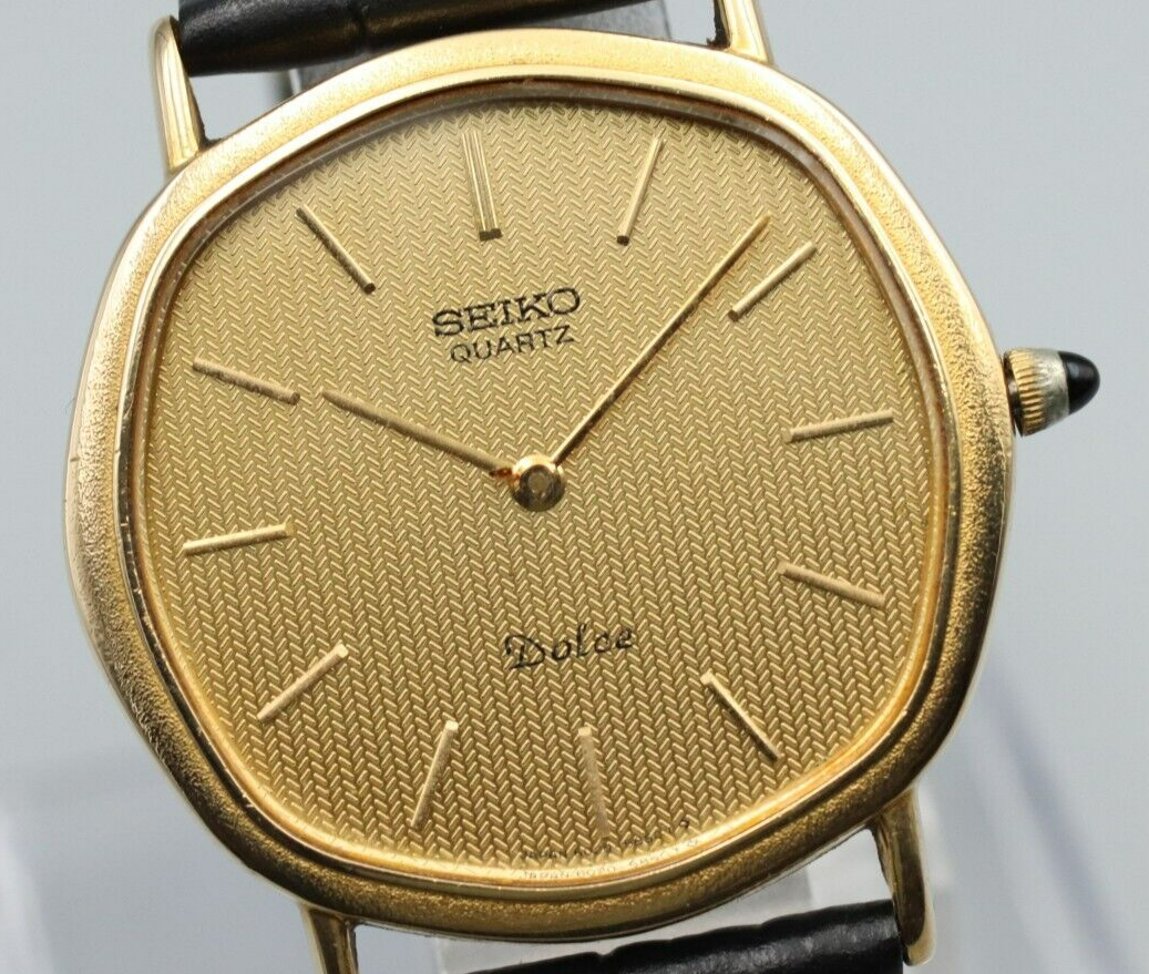 **NEAR MINT** Vintage SEIKO Dolce 6020-5630 Quartz Gold Dial Octagon Mens Watch