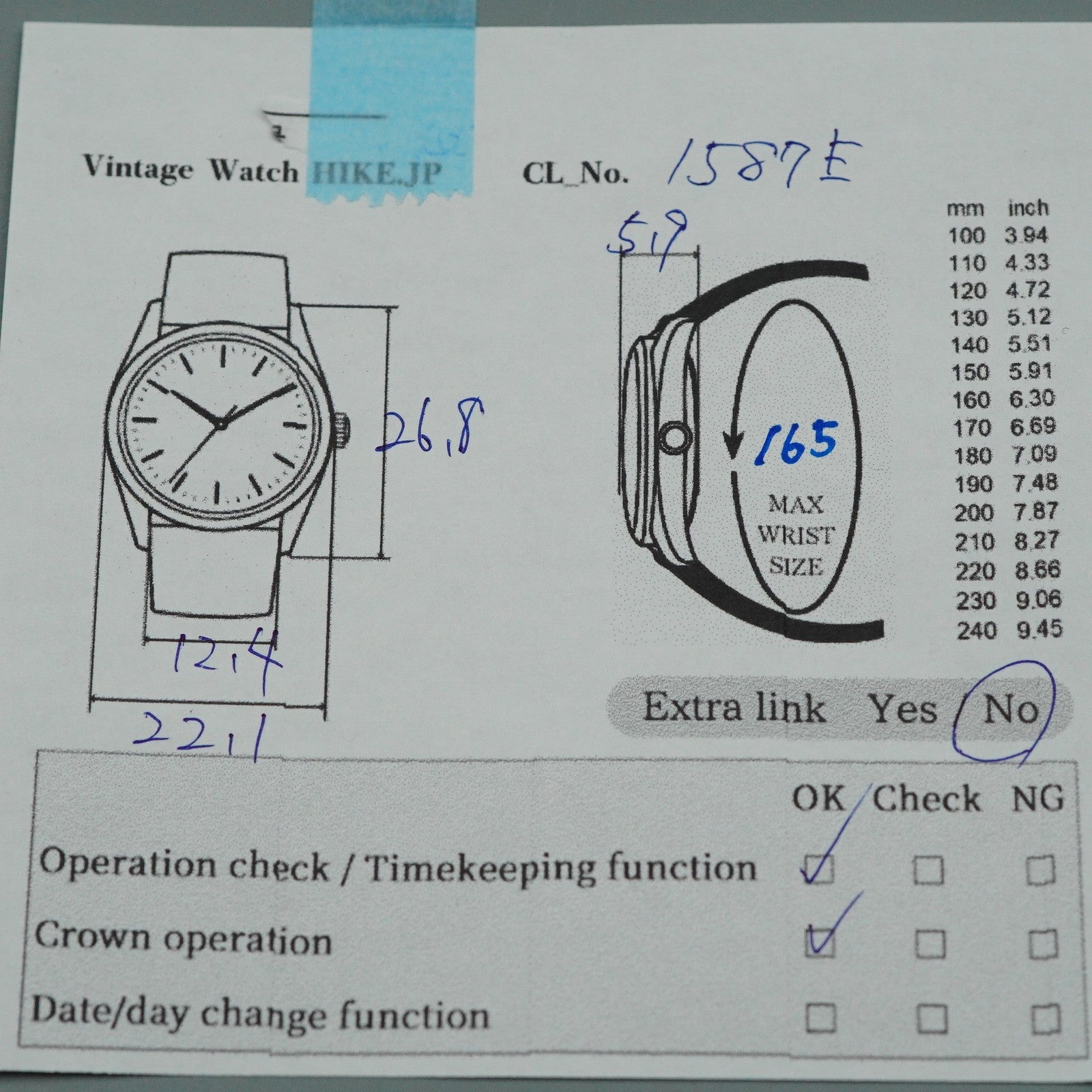 | Wrist Size | About 16.5 cm ( 6.5 in ) |