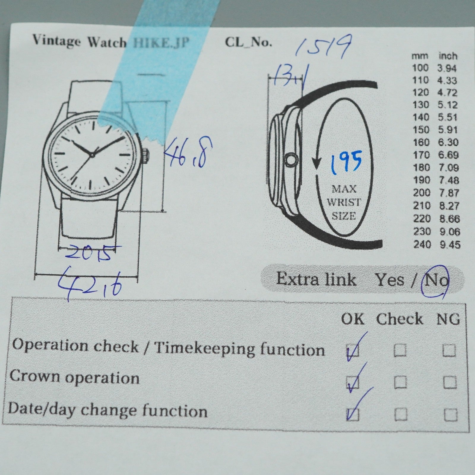 | Wrist Size | About 19.5 cm ( 7.7 in ) |