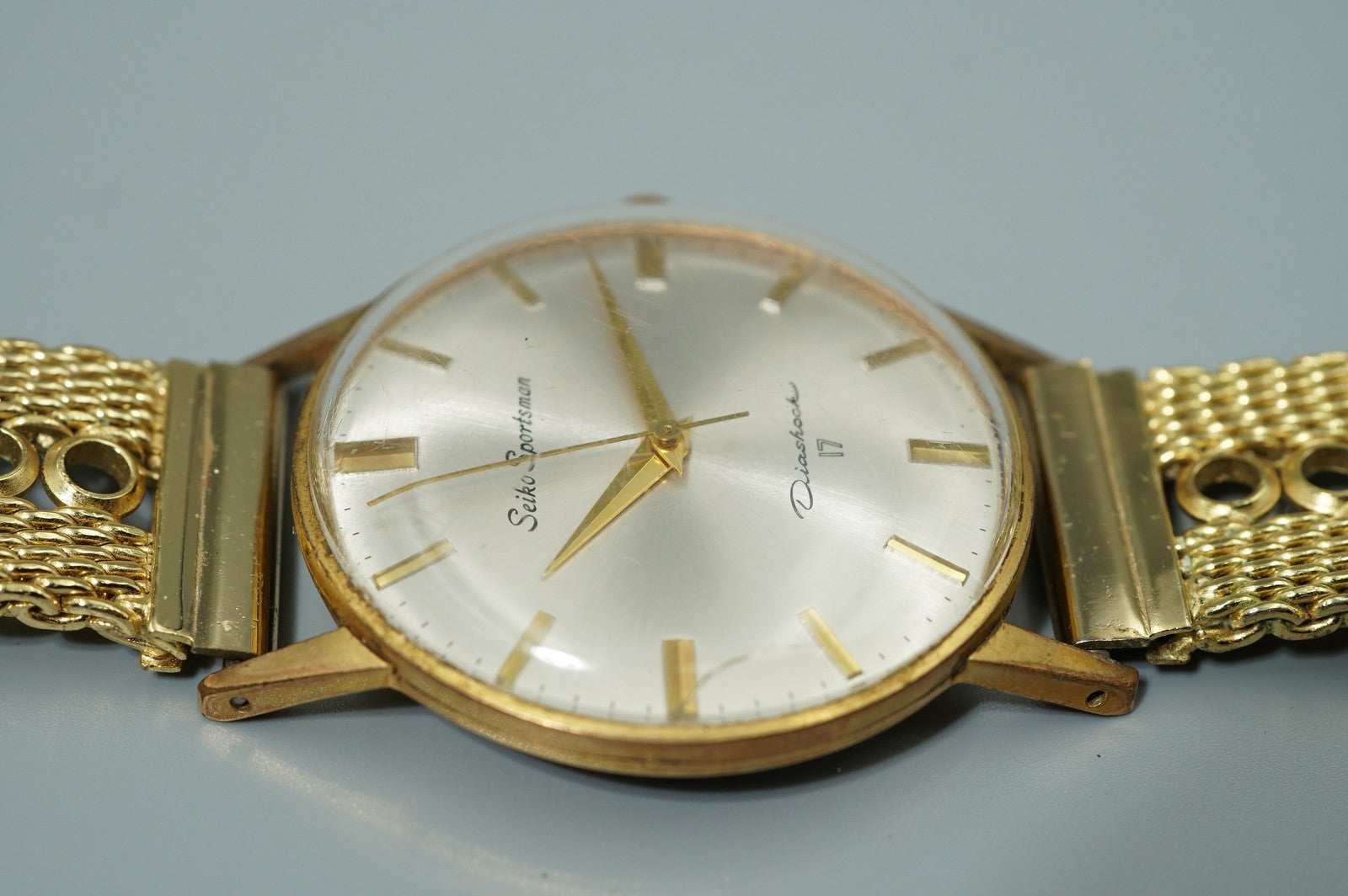 Vintage 1970 SEIKO SPORTSMAN J15005E Hand Wind Silver Round 35mm Mens Watch